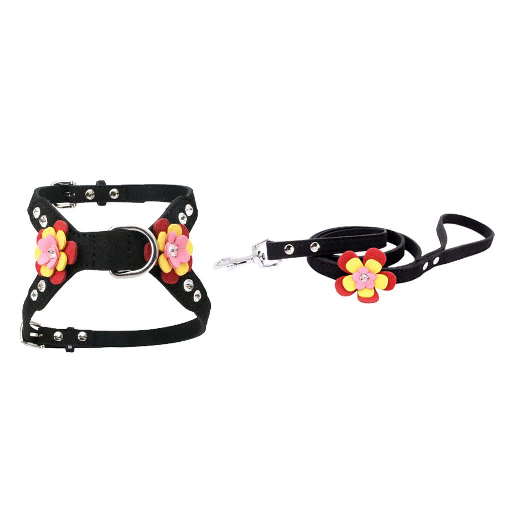 Pet Cat Dog Adjustable Harness Walking Lead Leash Chest Strap Black S