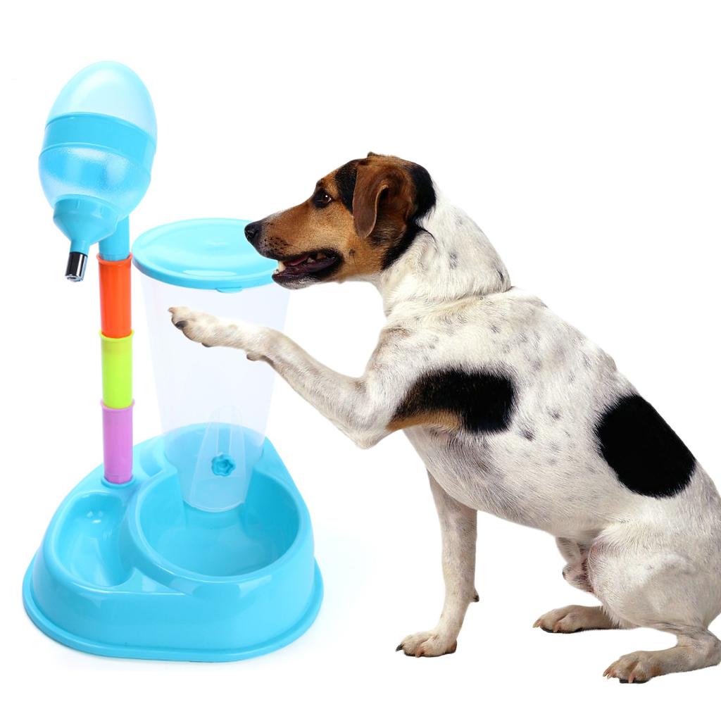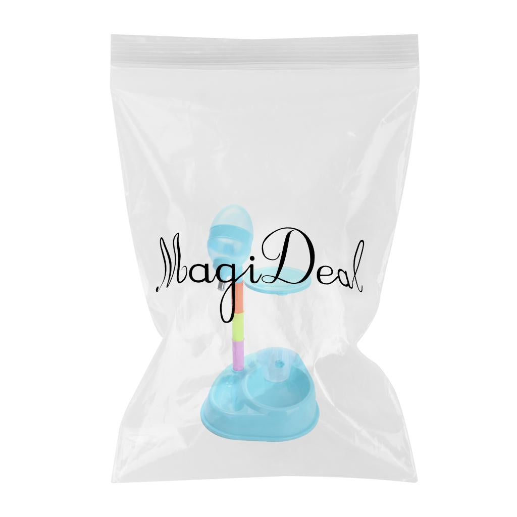Pet Cat Dog Water Drinker Dispenser Food Stand Feeder Dish Bowl Bottle Blue