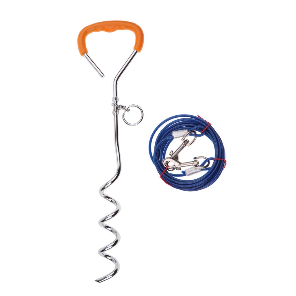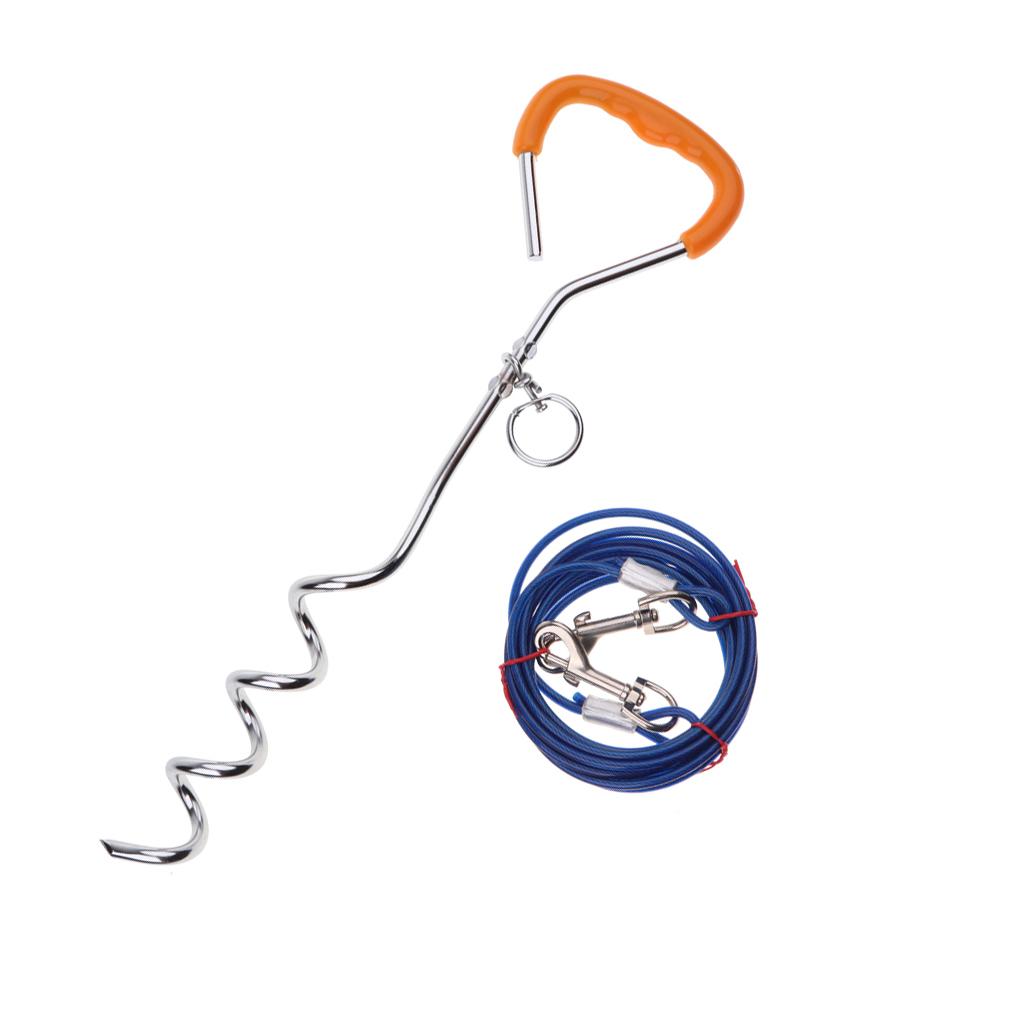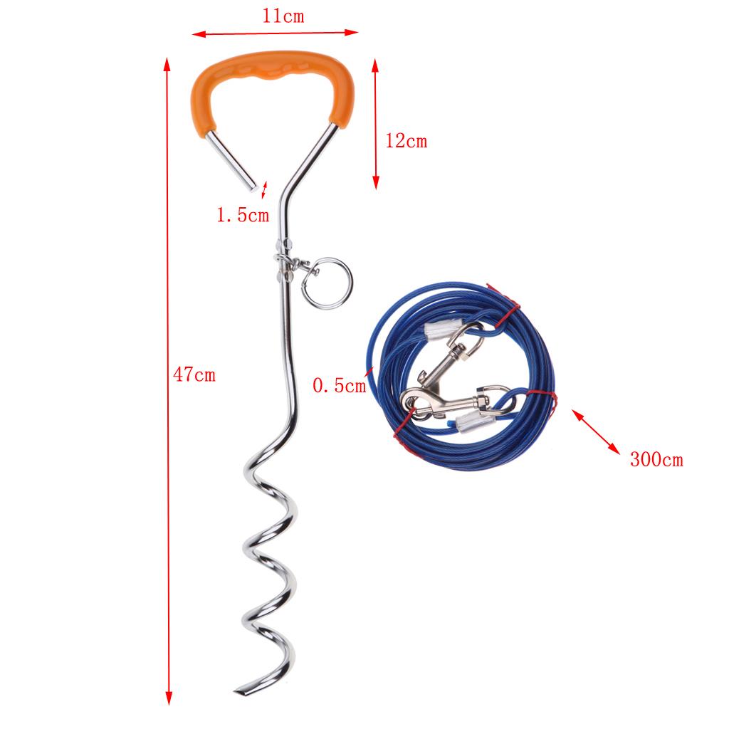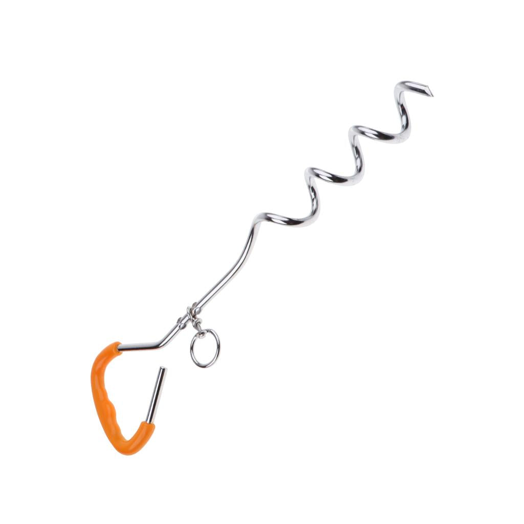 Heavy Duty corkscrew Stake.Just use hands to screw it into the ground like a corkscrew and attach the collar to the chain.