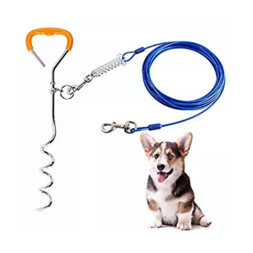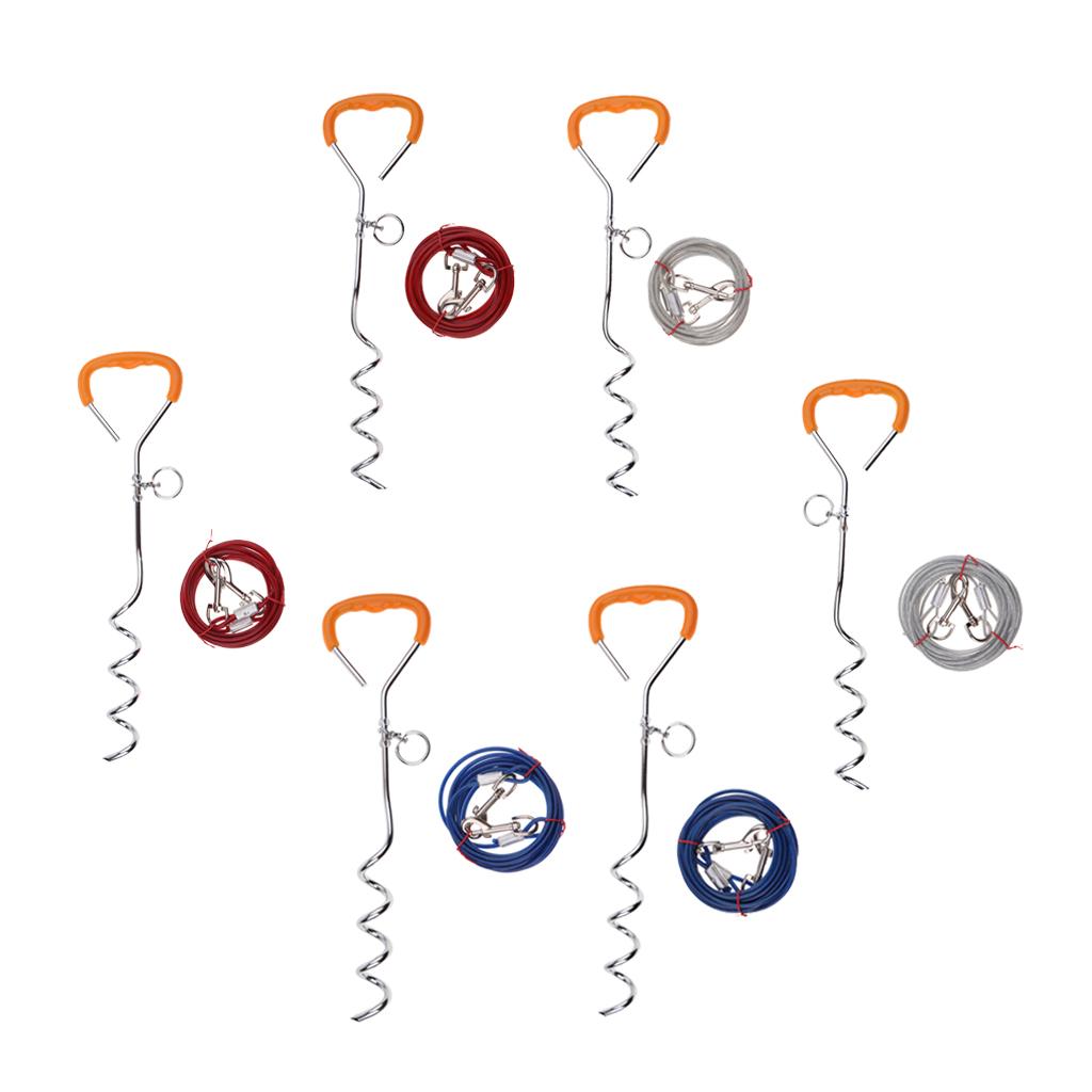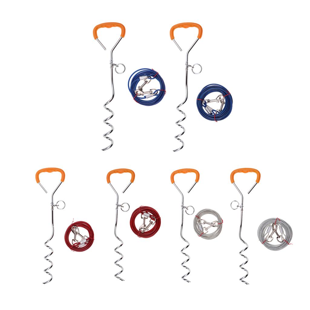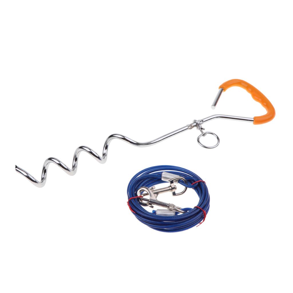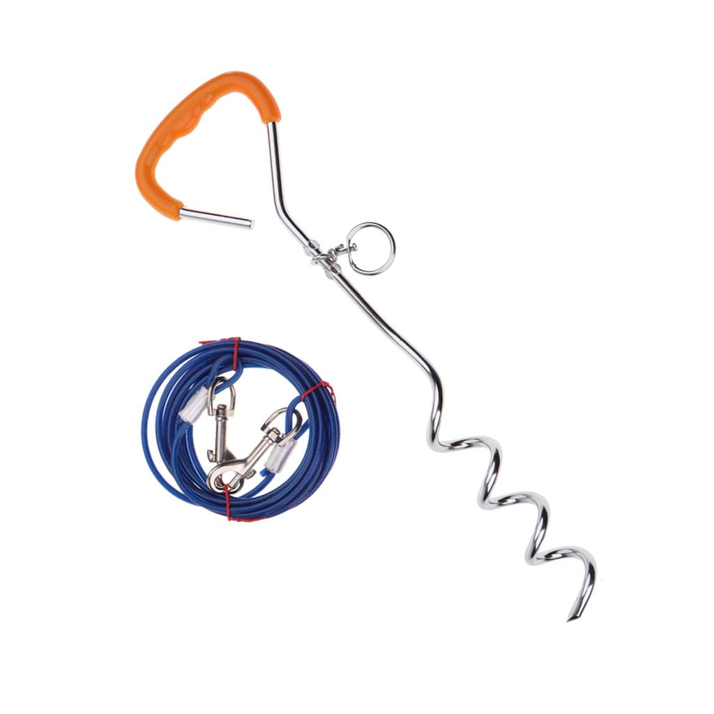 Heavy Duty corkscrew Stake.Just use hands to screw it into the ground like a corkscrew and attach the collar to the chain.