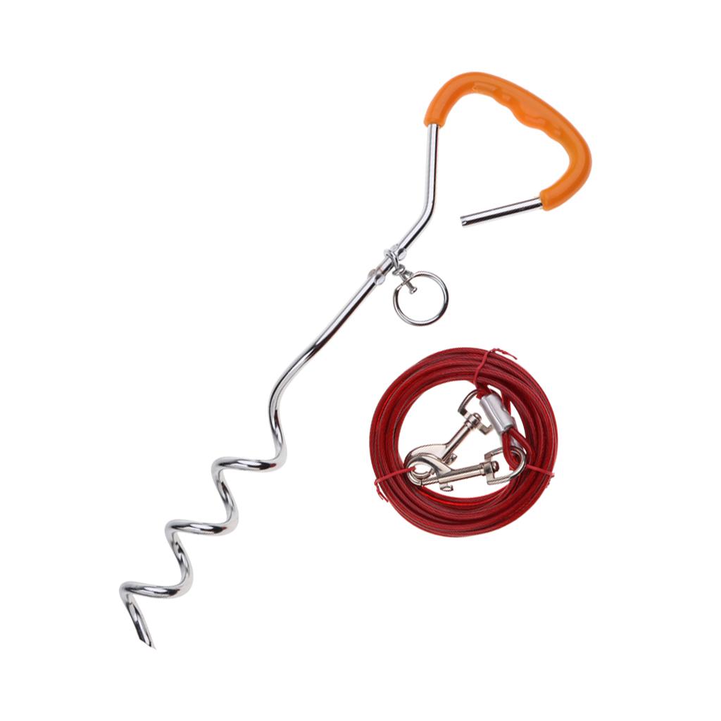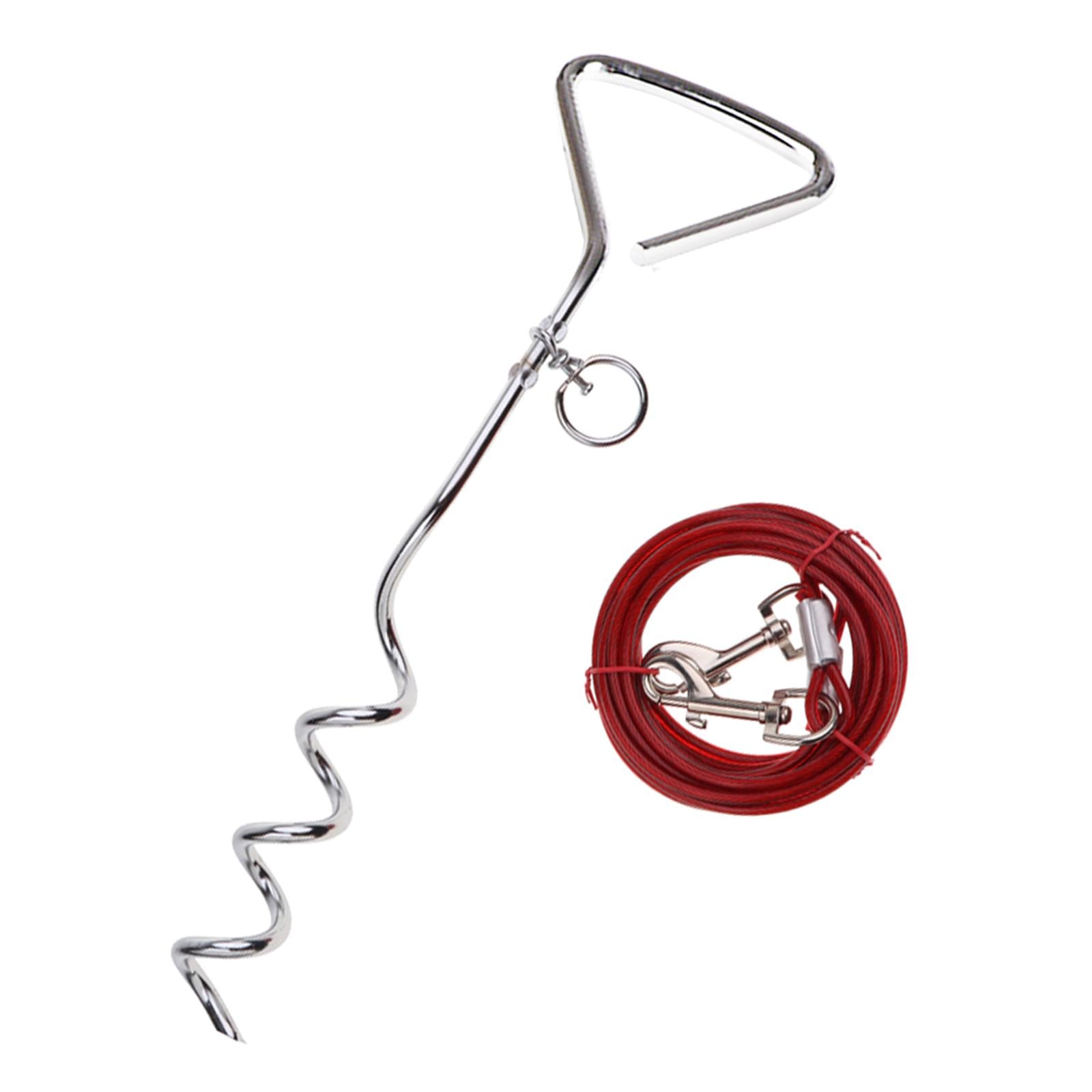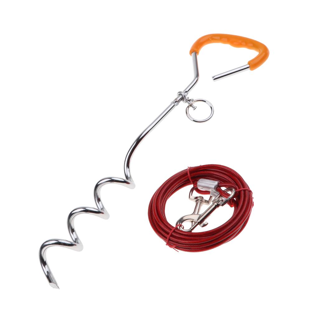 Heavy Duty corkscrew Stake.Just use hands to screw it into the ground like a corkscrew and attach the collar to the chain.