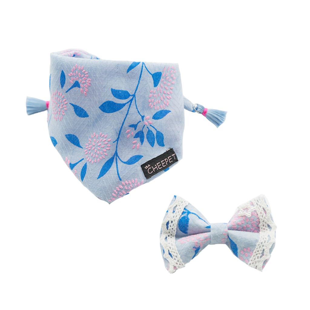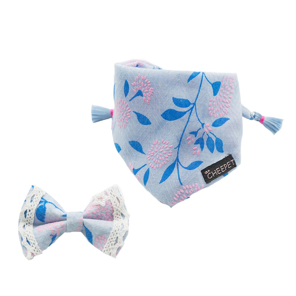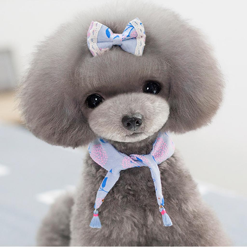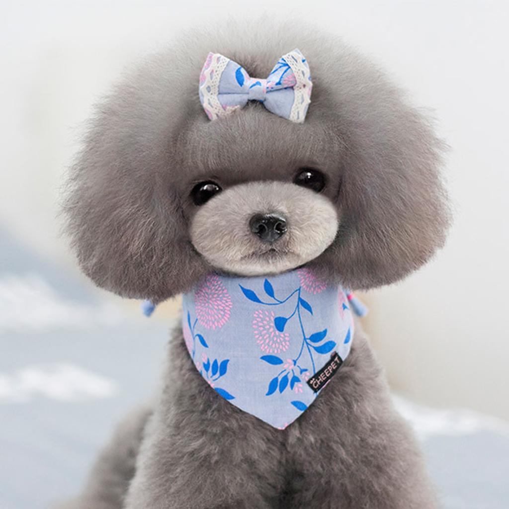 Lovely pet bandana collar with bowknot hair clip set.