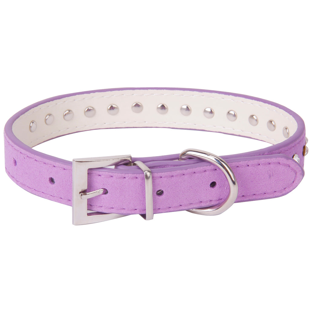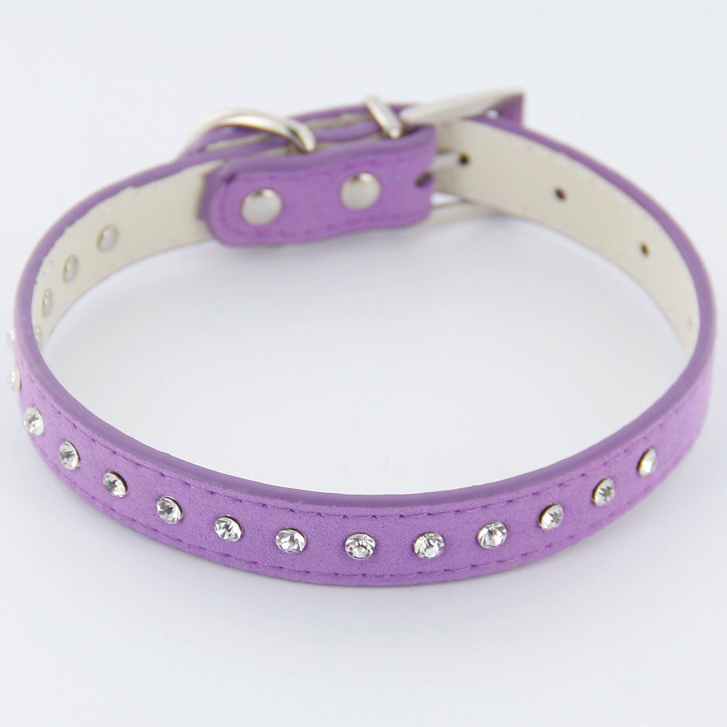Pet Dog Cat Crystal Rhinestone Cow Suede Neck Collar Size M - Purple