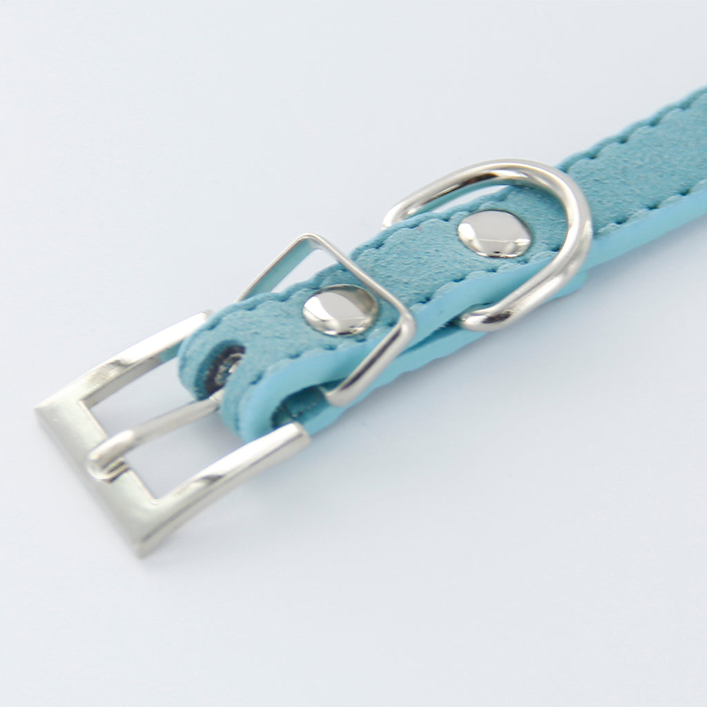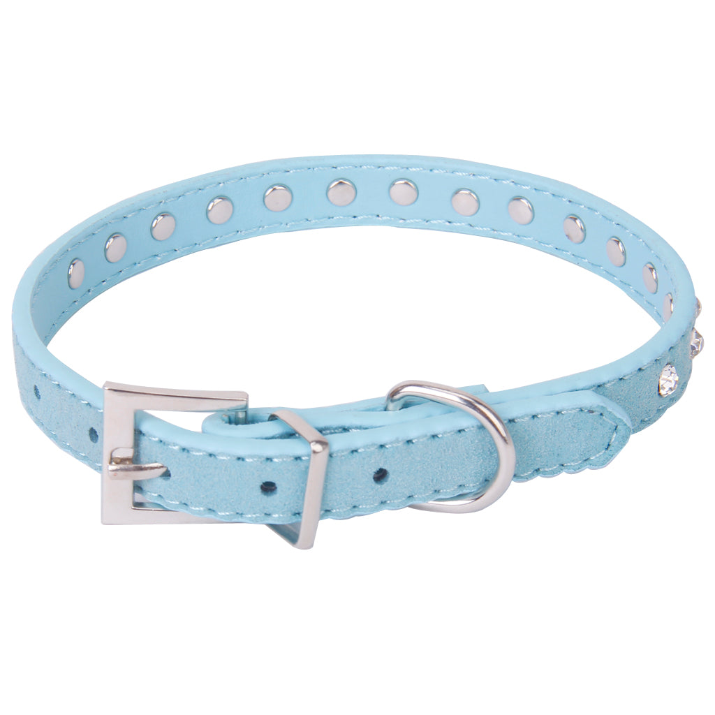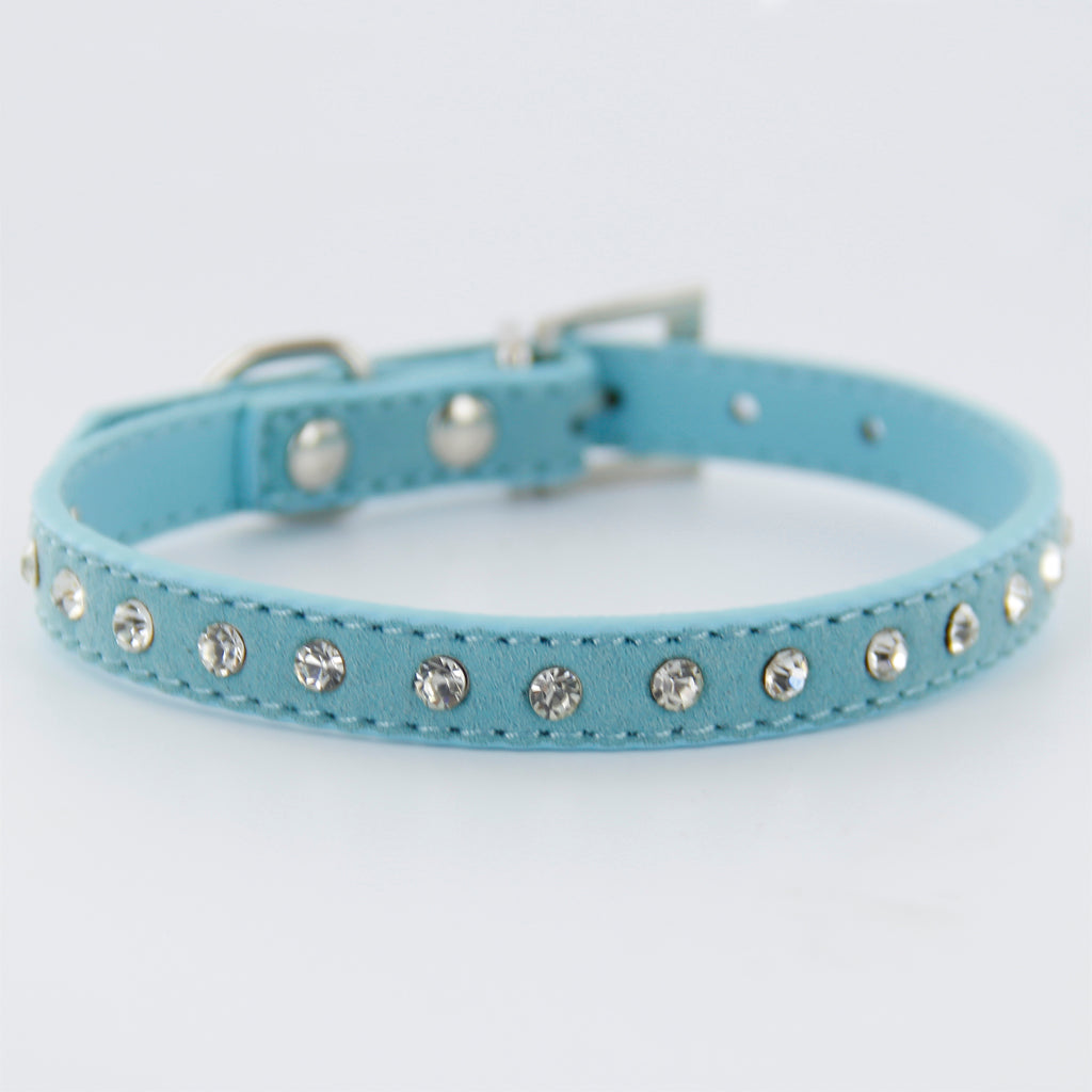 Pet Dog Cat Crystal Rhinestone Cow Suede Neck Collar Size S - Blue