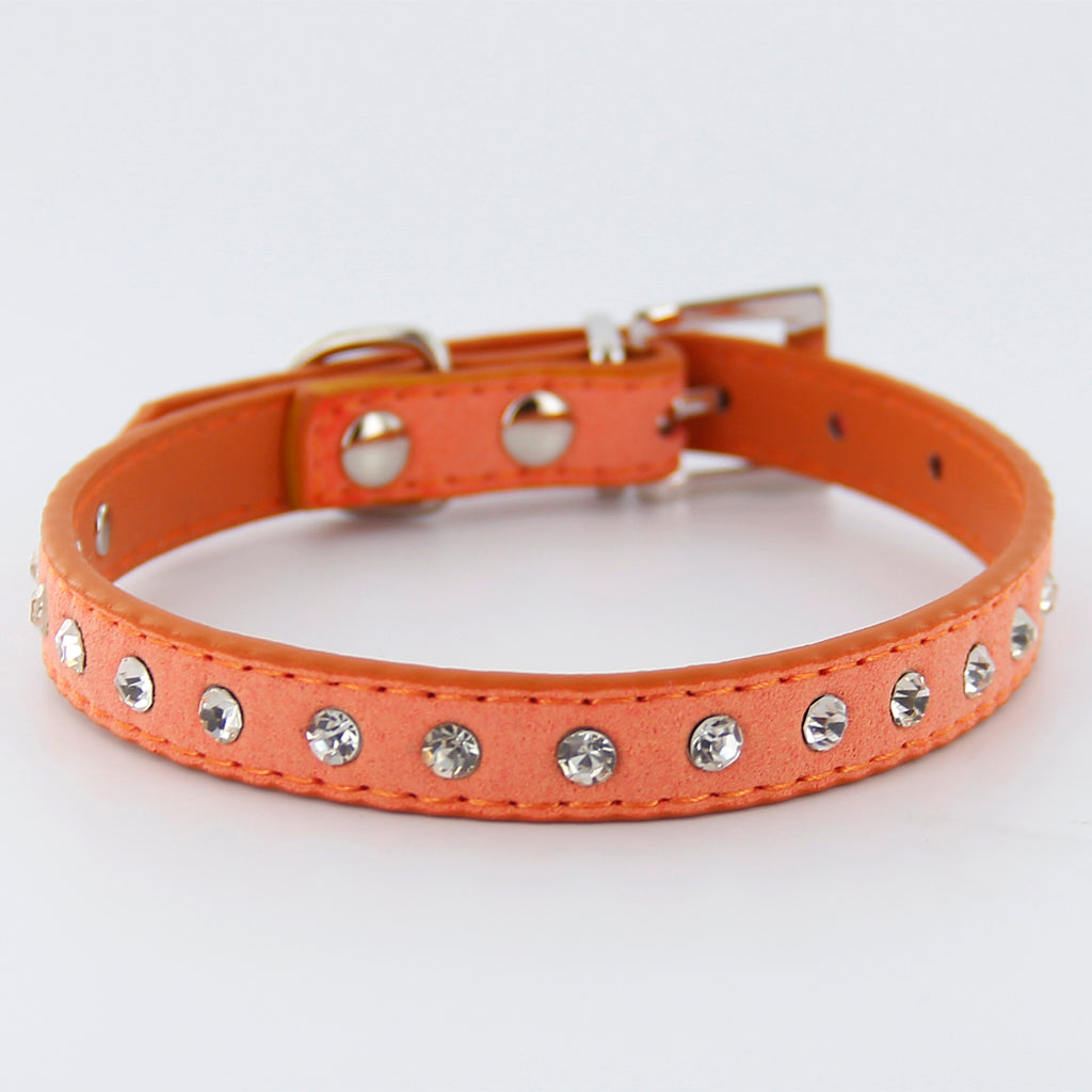 Pet Dog Cat Crystal Rhinestone Cow Suede Neck Collar Size S - Orange