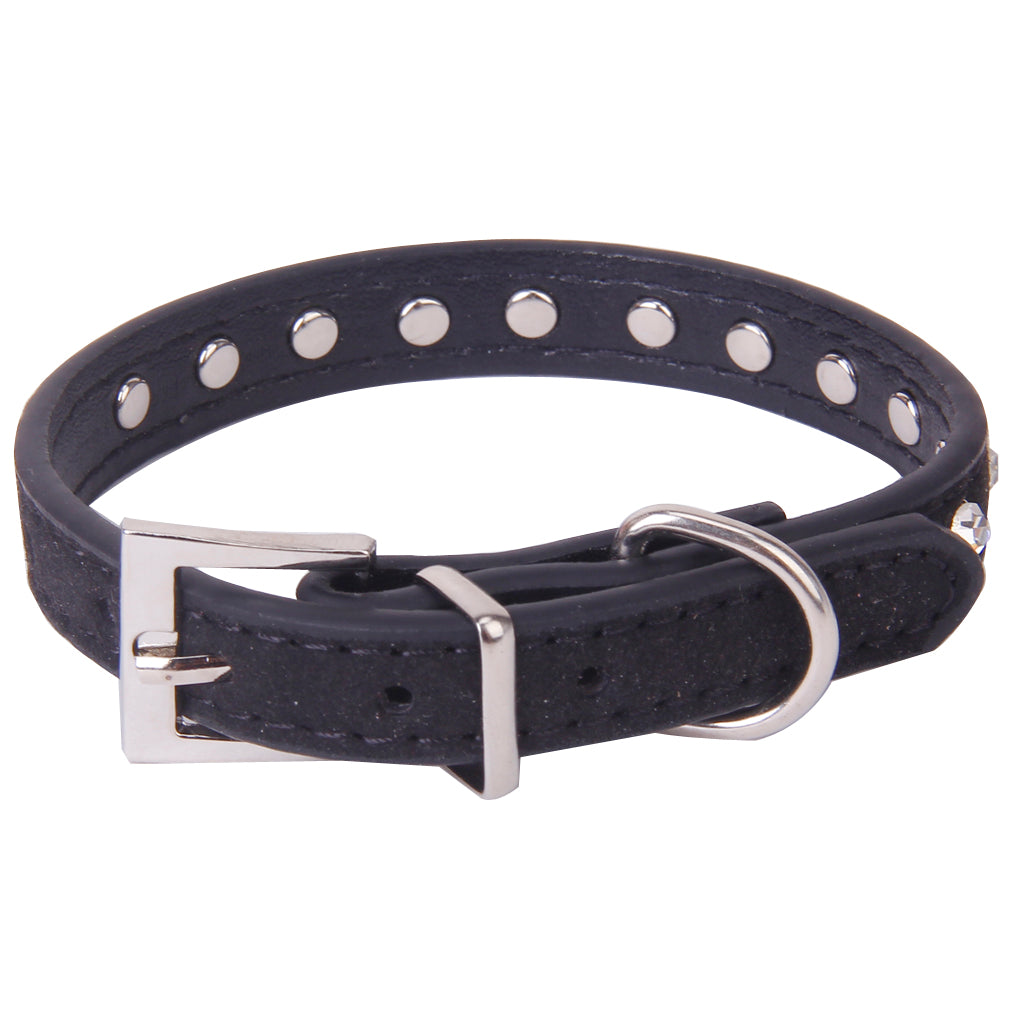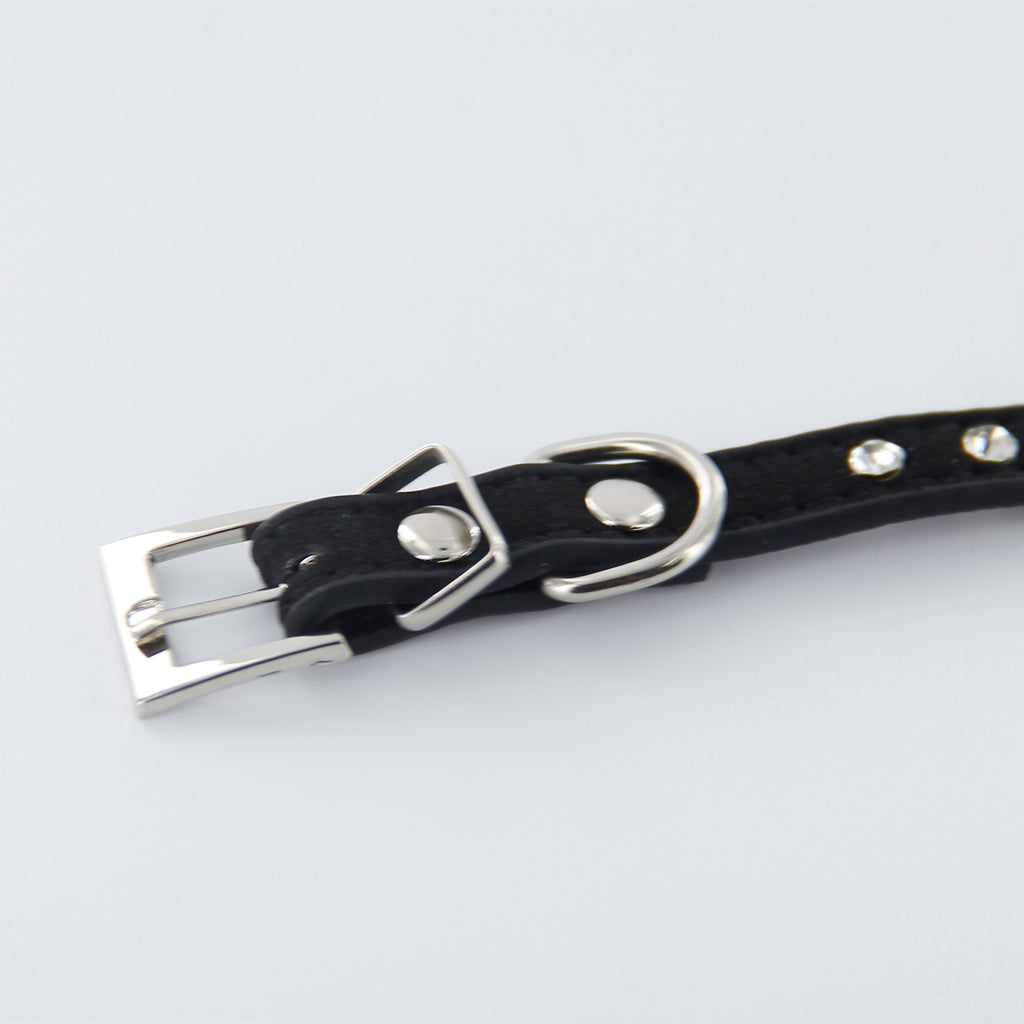Pet Dog Cat Crystal Rhinestone Cow Suede Neck Collar Size XS - Black