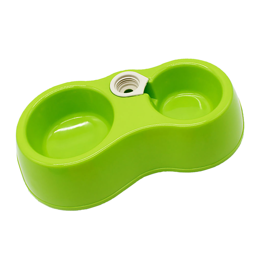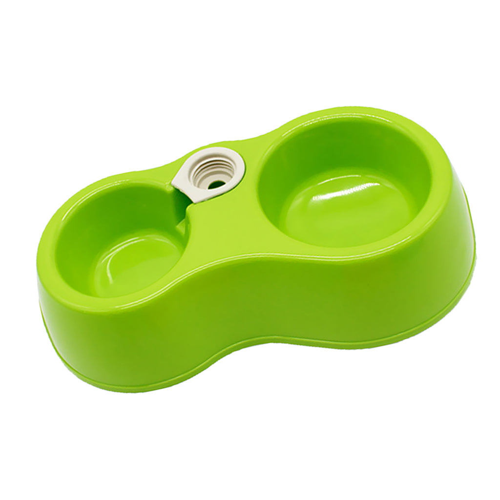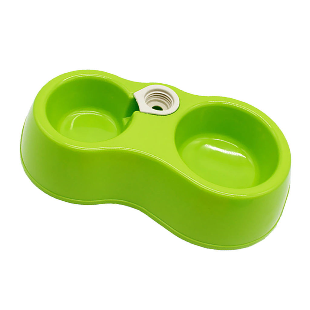 Pet Dog Cat Food Water Fountain Dish Feeder Double Plastic Bowl Green