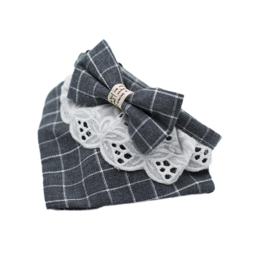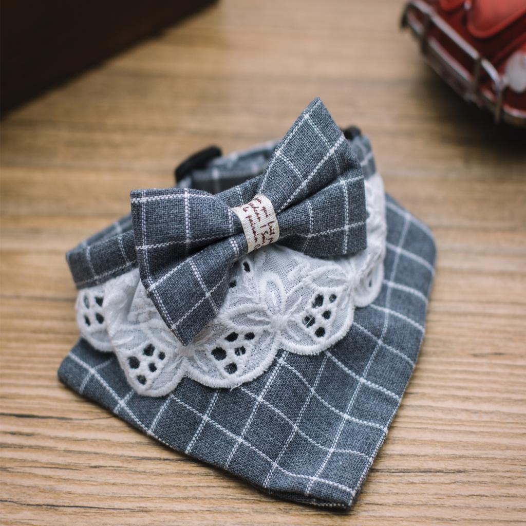 Pet Dog Cat Neck Towel Fashion Clothing Triangle Plaid Neckerchief Scarf Bib Saliva Towel Bandana Collar Gray S