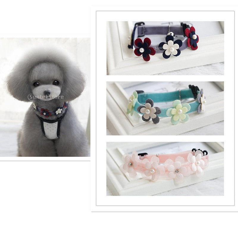 Pet Dog Cat Necklace with Flower Artificial Pearl Bell Decor-Grey(M)
