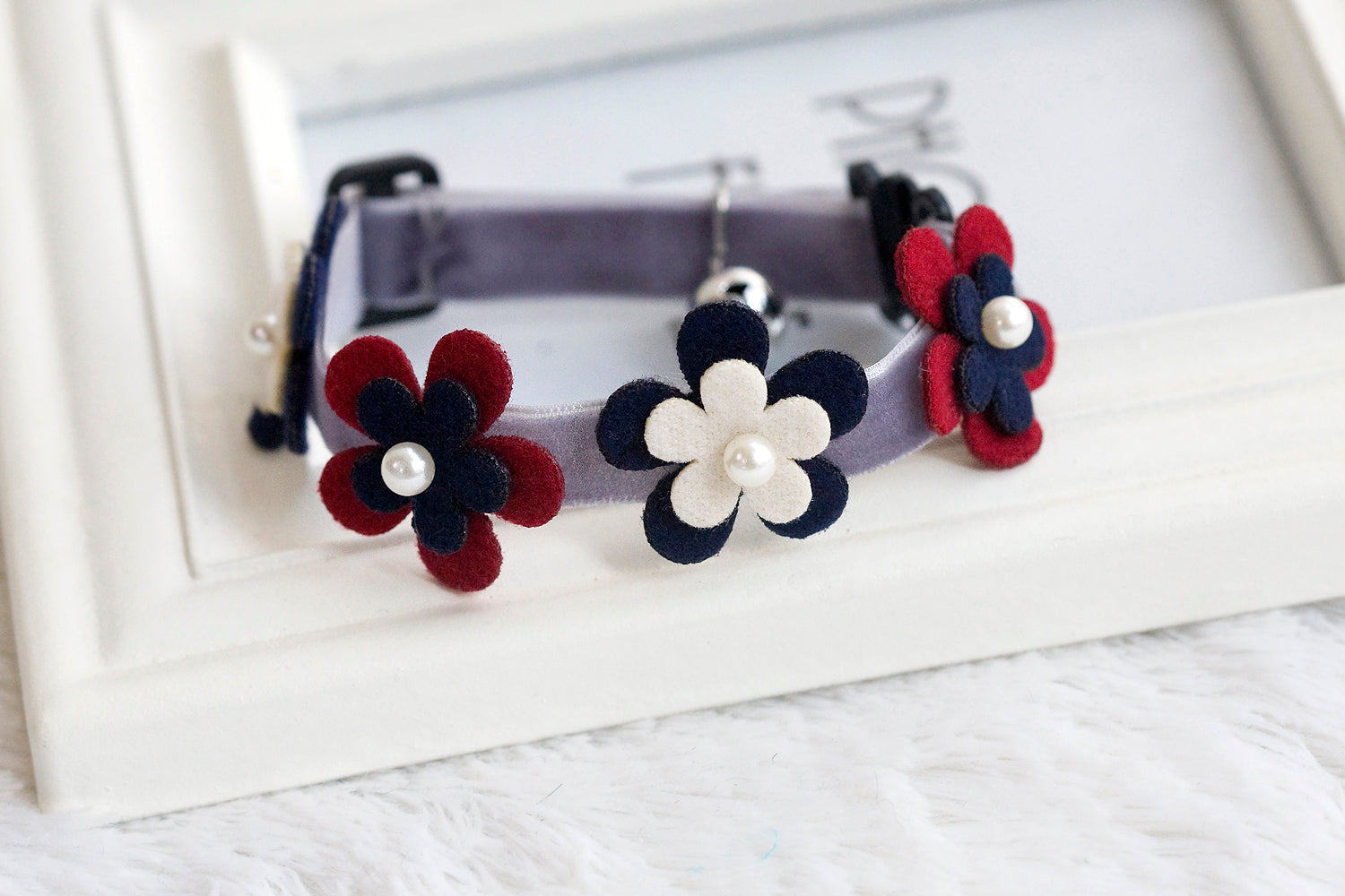 • A collar mounted with colorful flowers and artificial pearls perfectly
