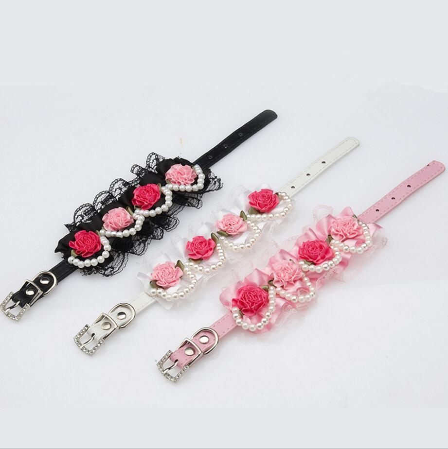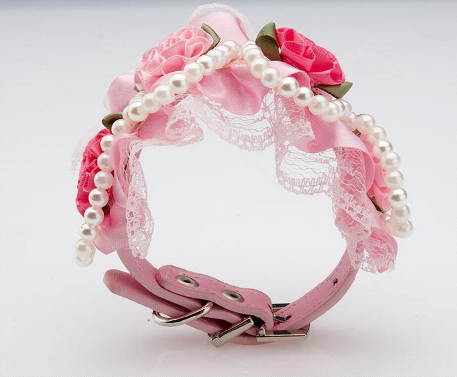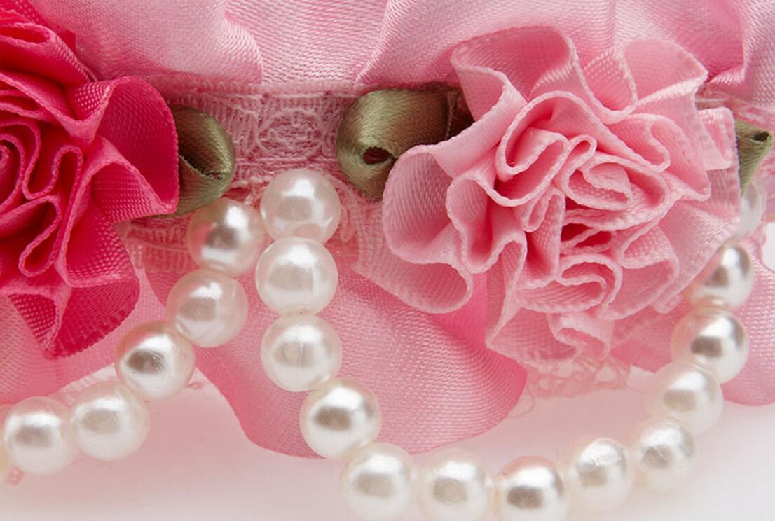 Pet Dog Cat Puppy Imitation Pearls Necklace Flower Lace Collar Belt Pink S