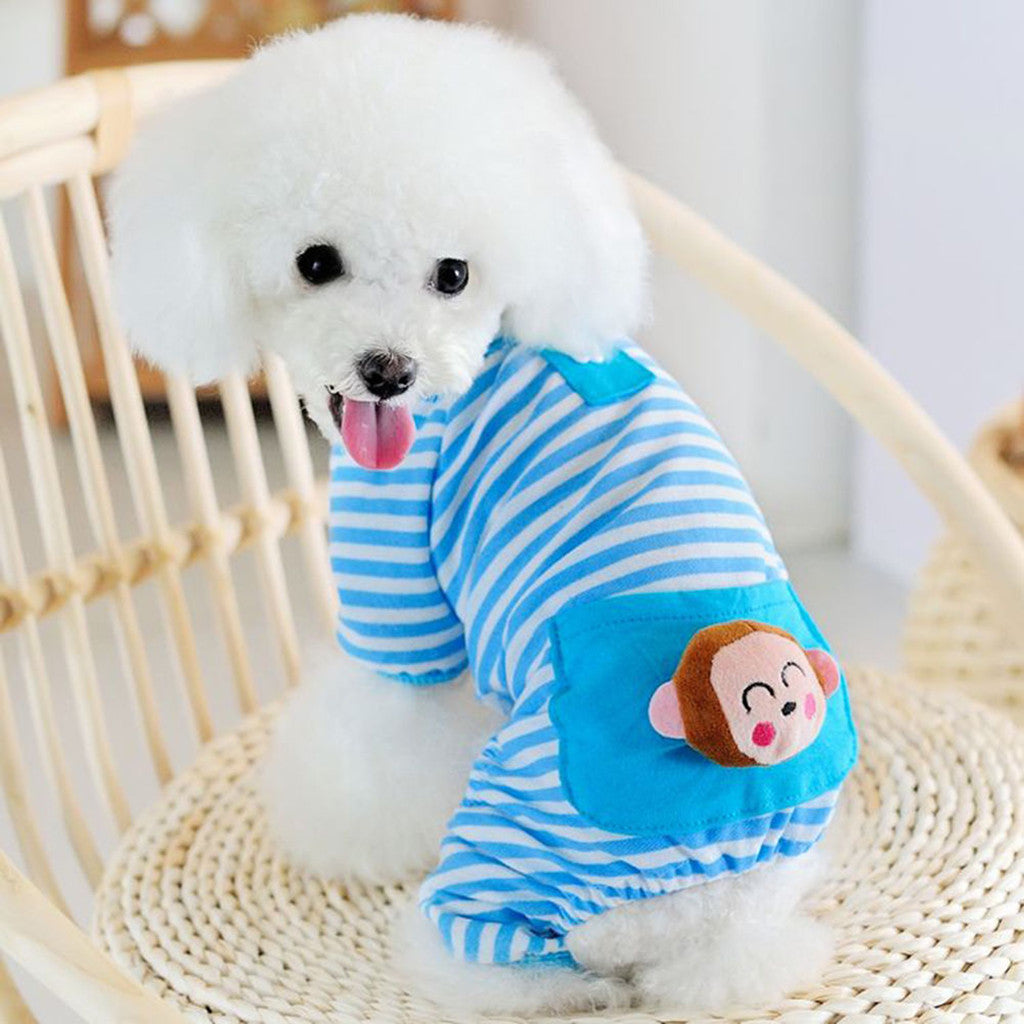 Pet Dog Cat Puppy Soft Striped Pajamas Jumpsuit Coat Clothes Apparel Blue S