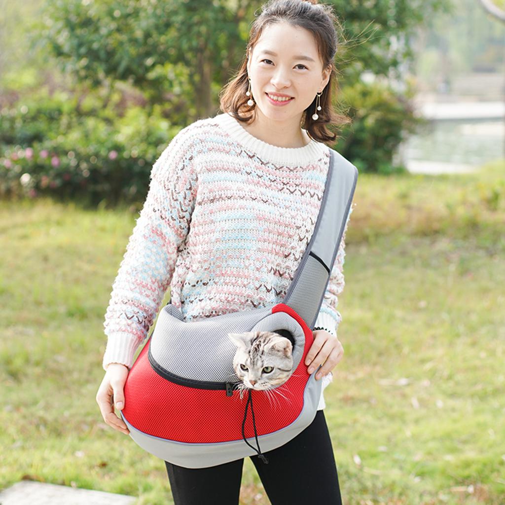Pet Dog Cat Sling Carrier Travel Tote Shoulder Bag Backpack Holder Red L