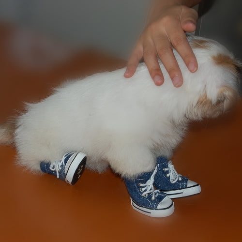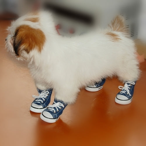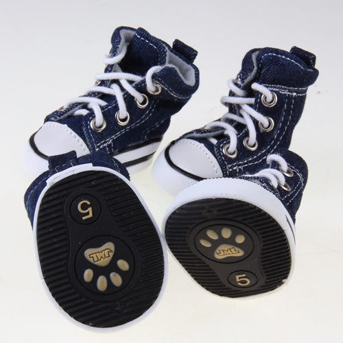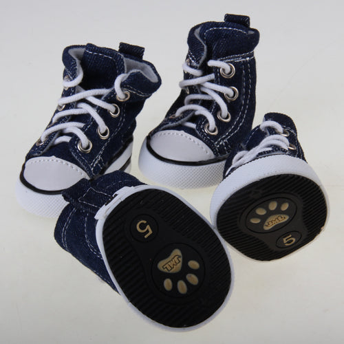 This is a brand new set of dog denim sport shoes. Protecting the tender pads from hot road surfaces or snowy grounds. Keeping the house clean even after walking your pet in rainy weathers and on muddy grounds. Sure to bring you and your pets lots of fun and laughter.