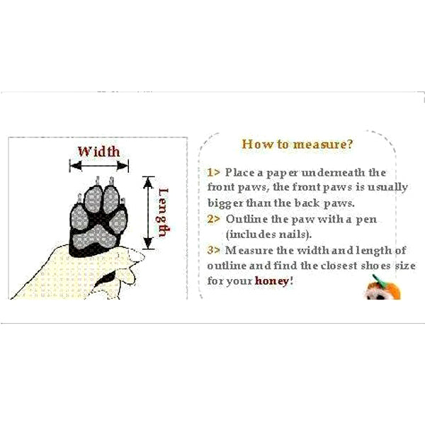 Note: Please be reminded that due lighting effects, monitor's brightness/contrast settings etc, there could be some slight differences in the colour tone of the website's photo and the actual item. Please refer to the measurement above to ensure the fit for your pet, these dog shoes are marked 5# on the sole but the actual size may differ for different styles of dog shoes. Please check before buying to avoid problems or exchange because we do not pay the postage of return items. Sorry for any inconvenience this may cause.