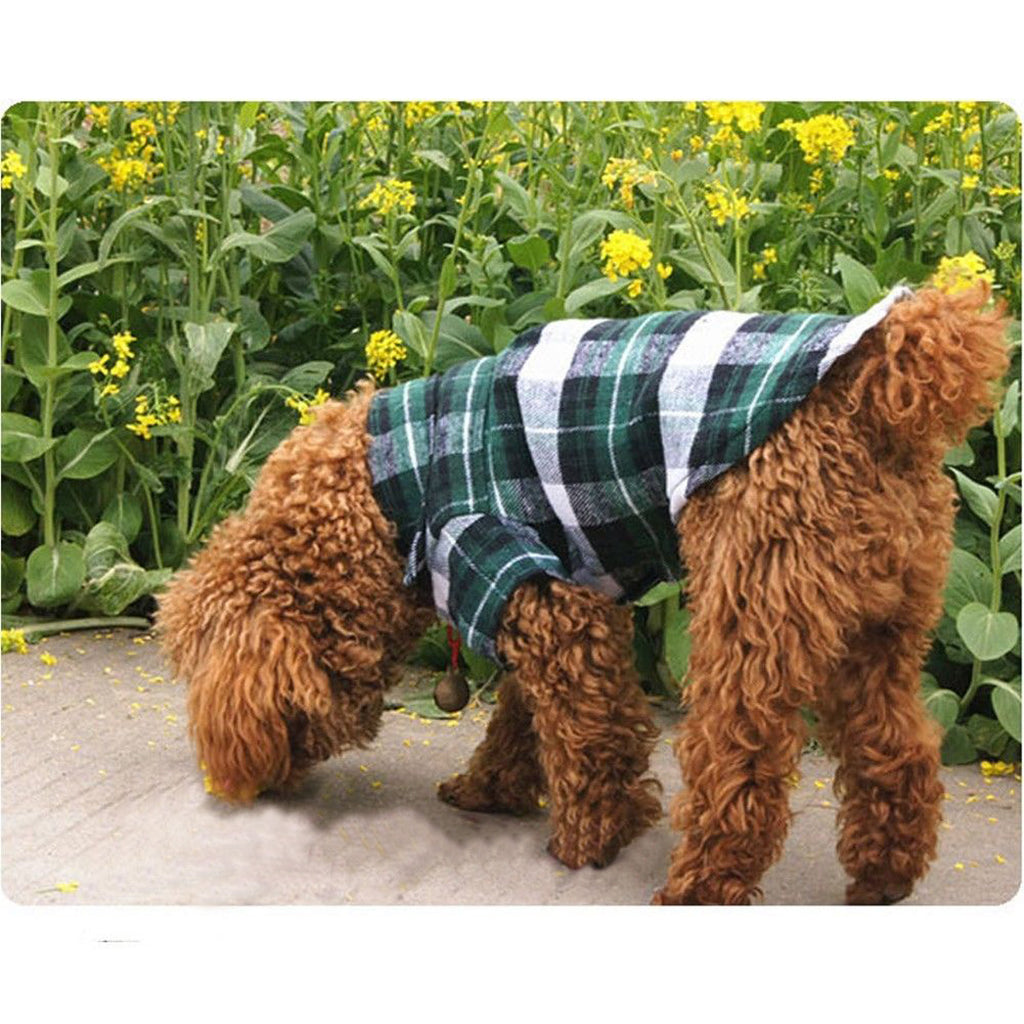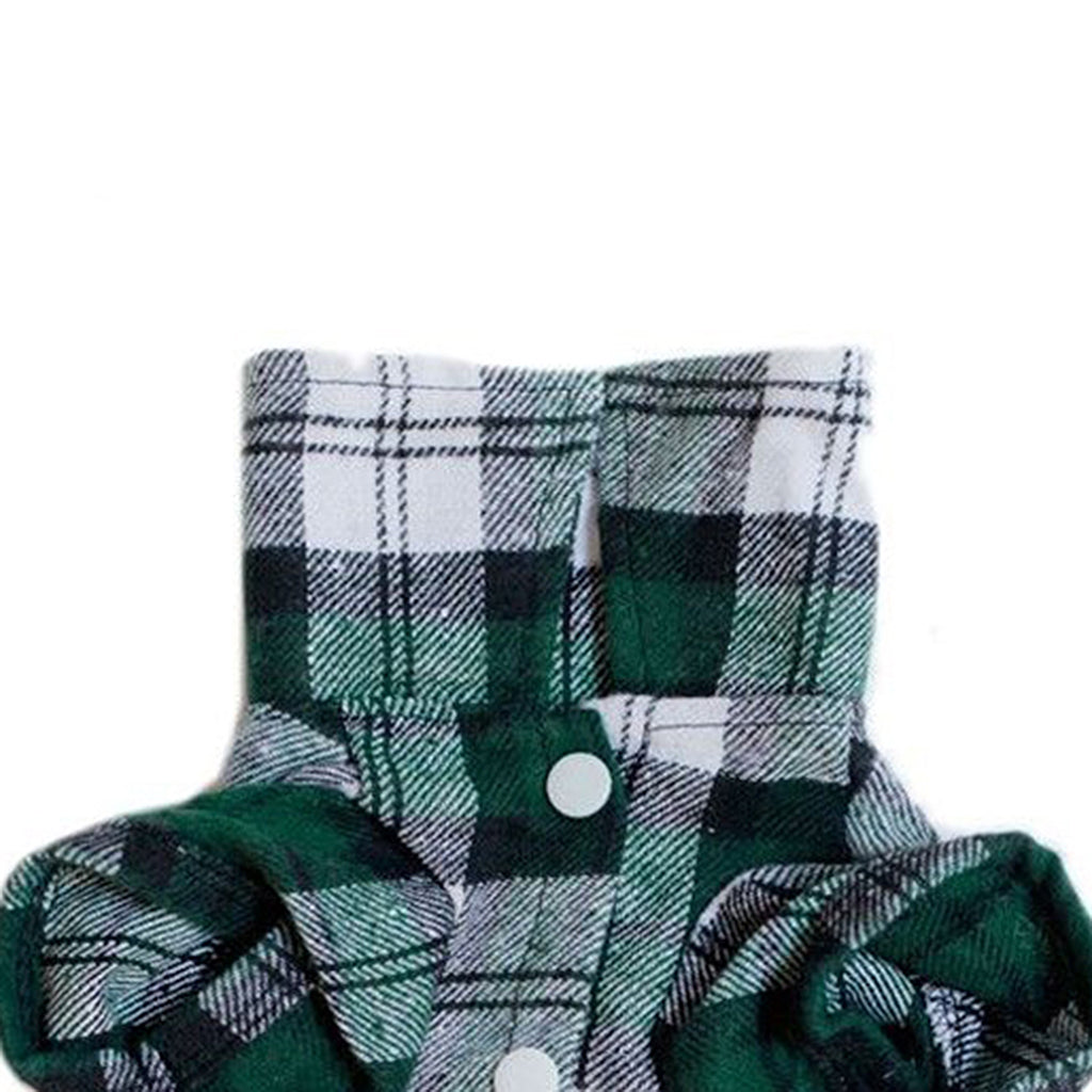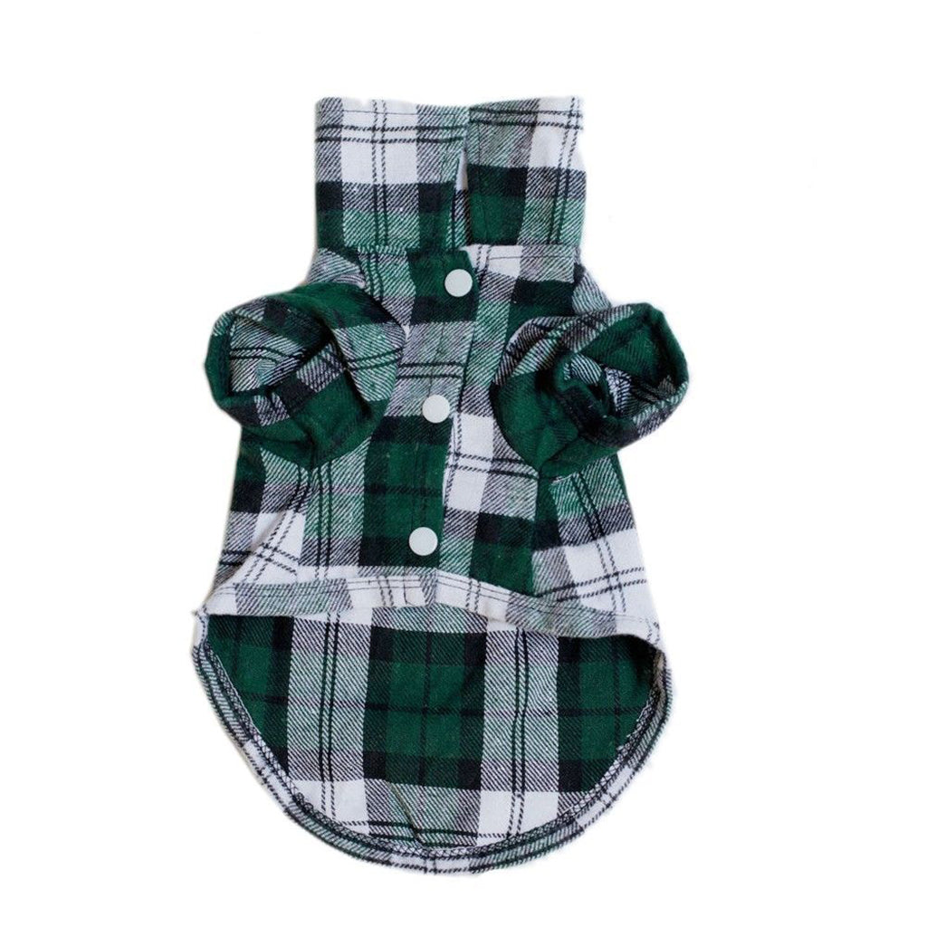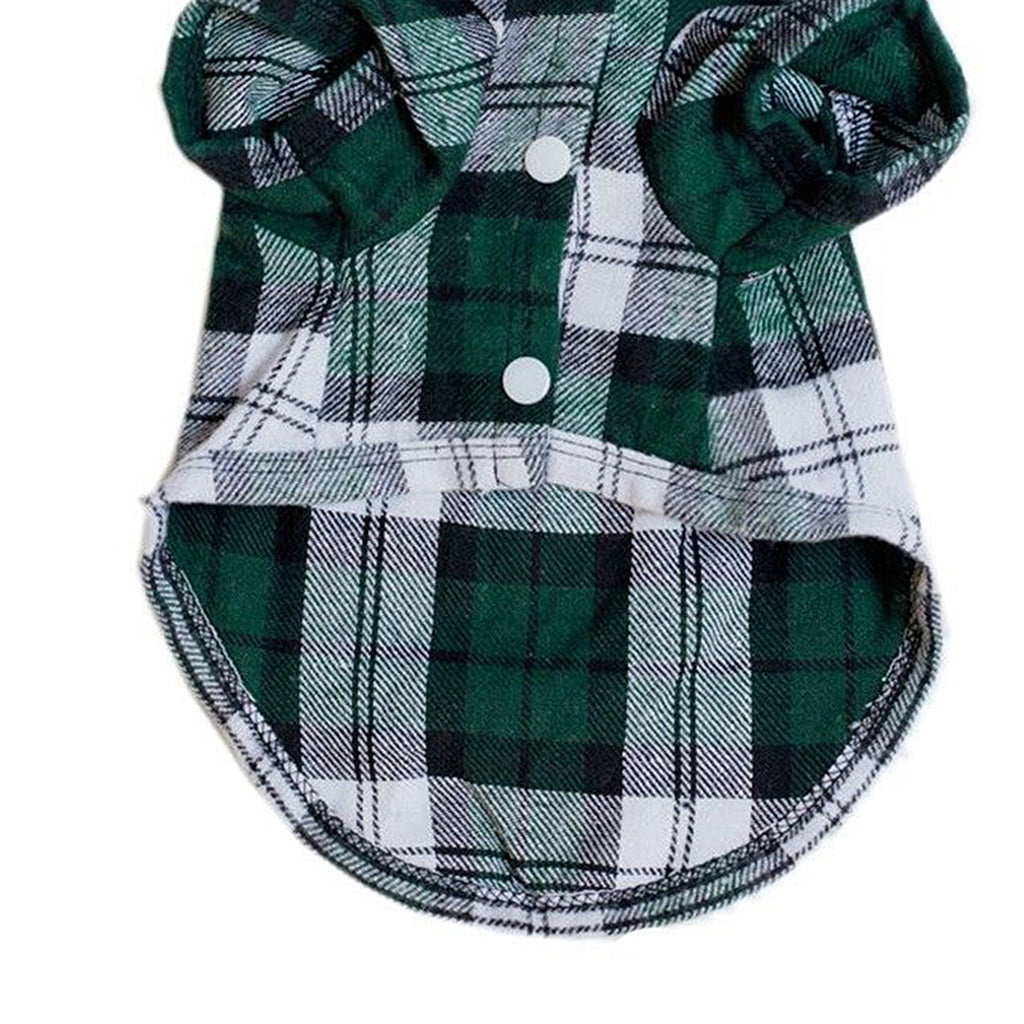 Pet Dog Green Plaid Pattern T-Shirt Lapel Coat Jacket Clothes Apparel Tops-M