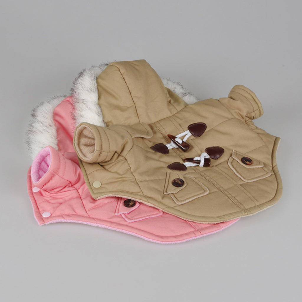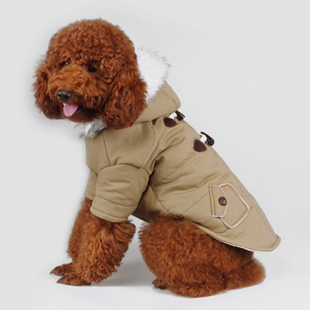 Pet Dog Overcoat Winter Clothes Christmas Outfit with Horn Buttons Khaki_M