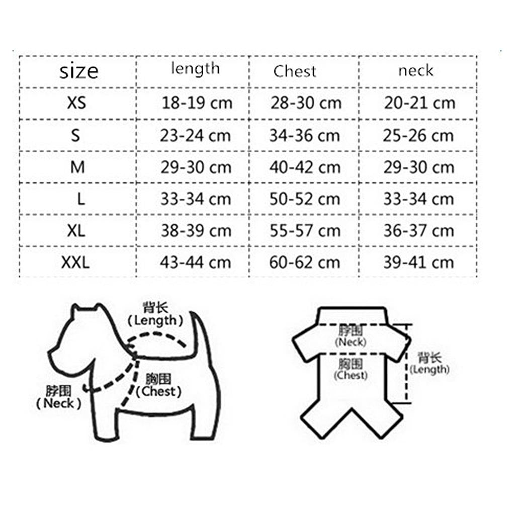 Size XS: Back: 18-19cm/7.09-7.48 inches; Chest: 28-30cm/11.02-11.81 inches; Neck: 20-21cm/7.87-8.27 inches