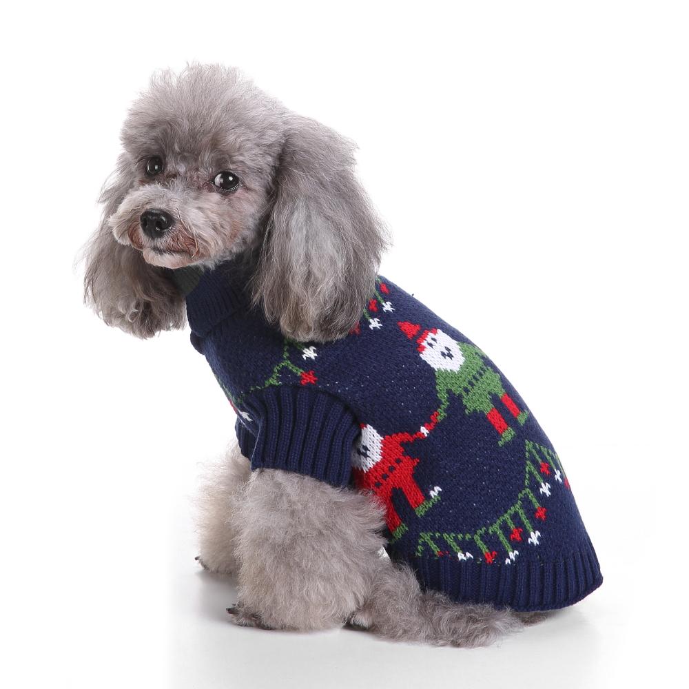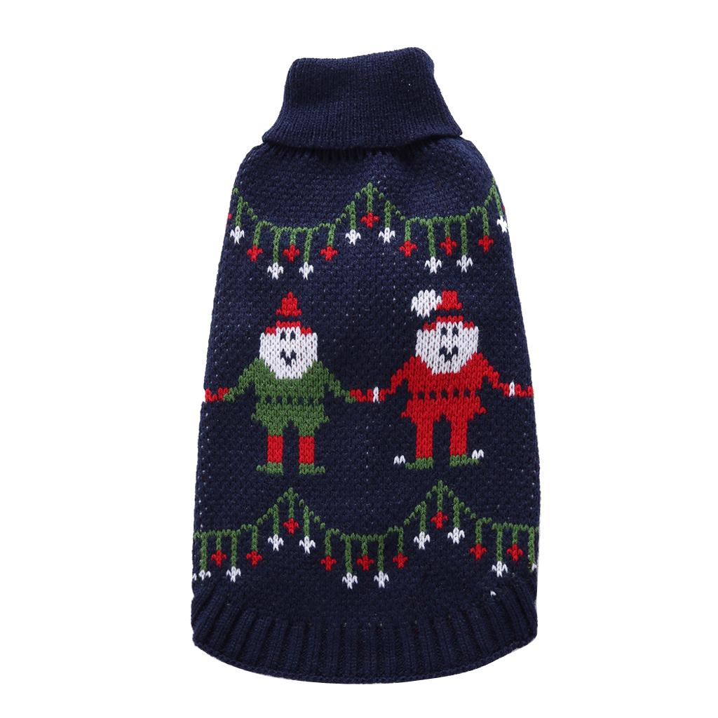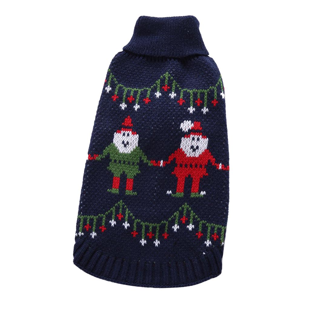 Pet Dog Puppy Christmas Outfit Winter Clothes Dress Knitted Sweater Navy_L