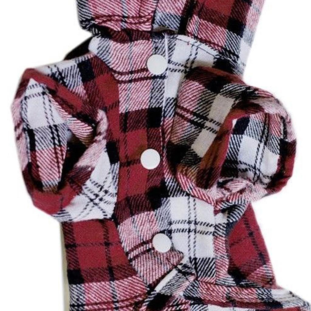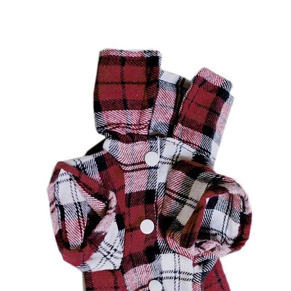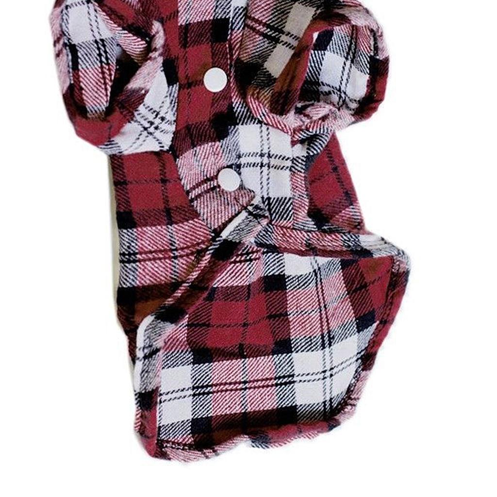 Pet Dog Red Plaid Pattern T-Shirt Lapel Coat Jacket Clothes Apparel Tops--XS