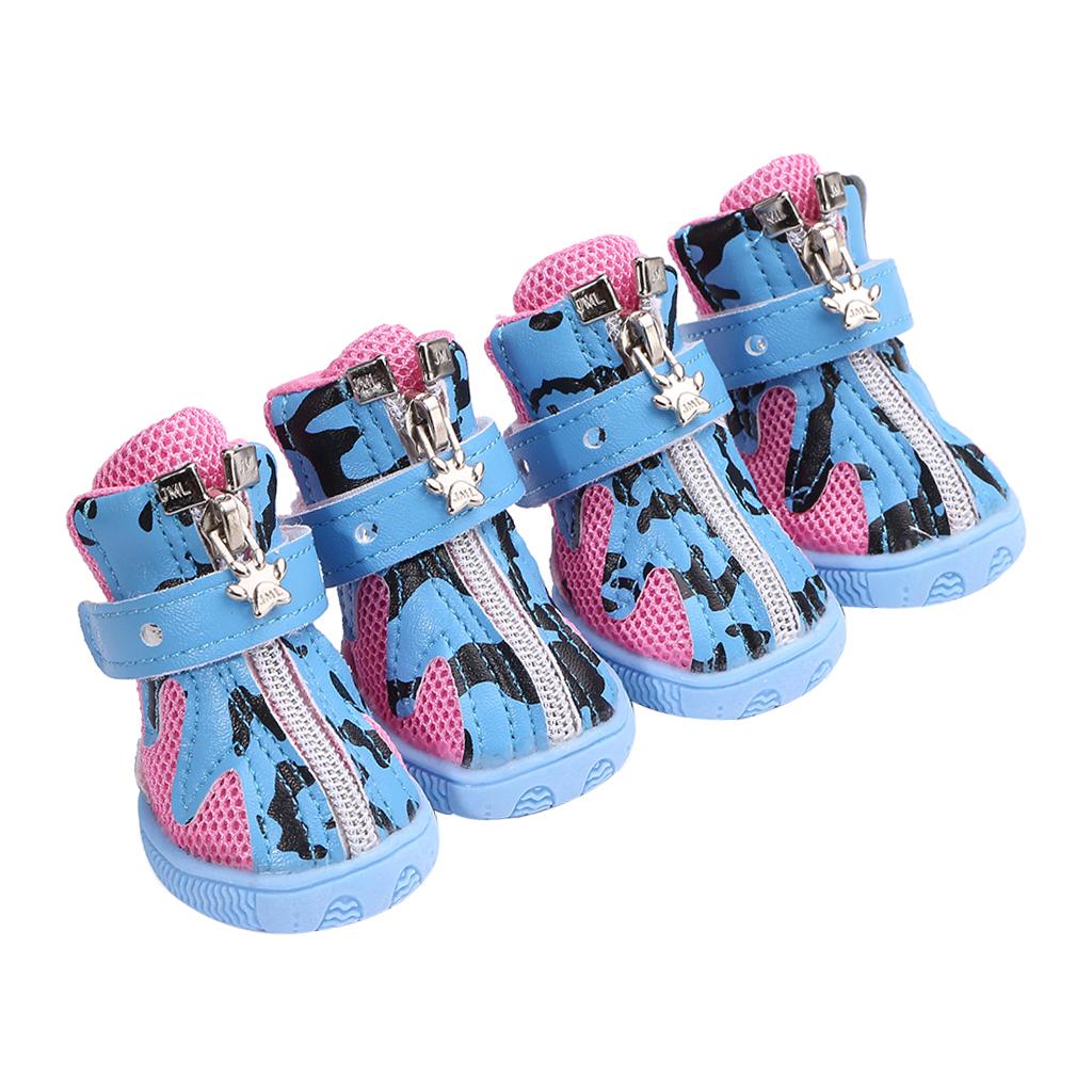 Pet Dog Shoes Puppy Boots Booties Dog Paw Protector Blue - M