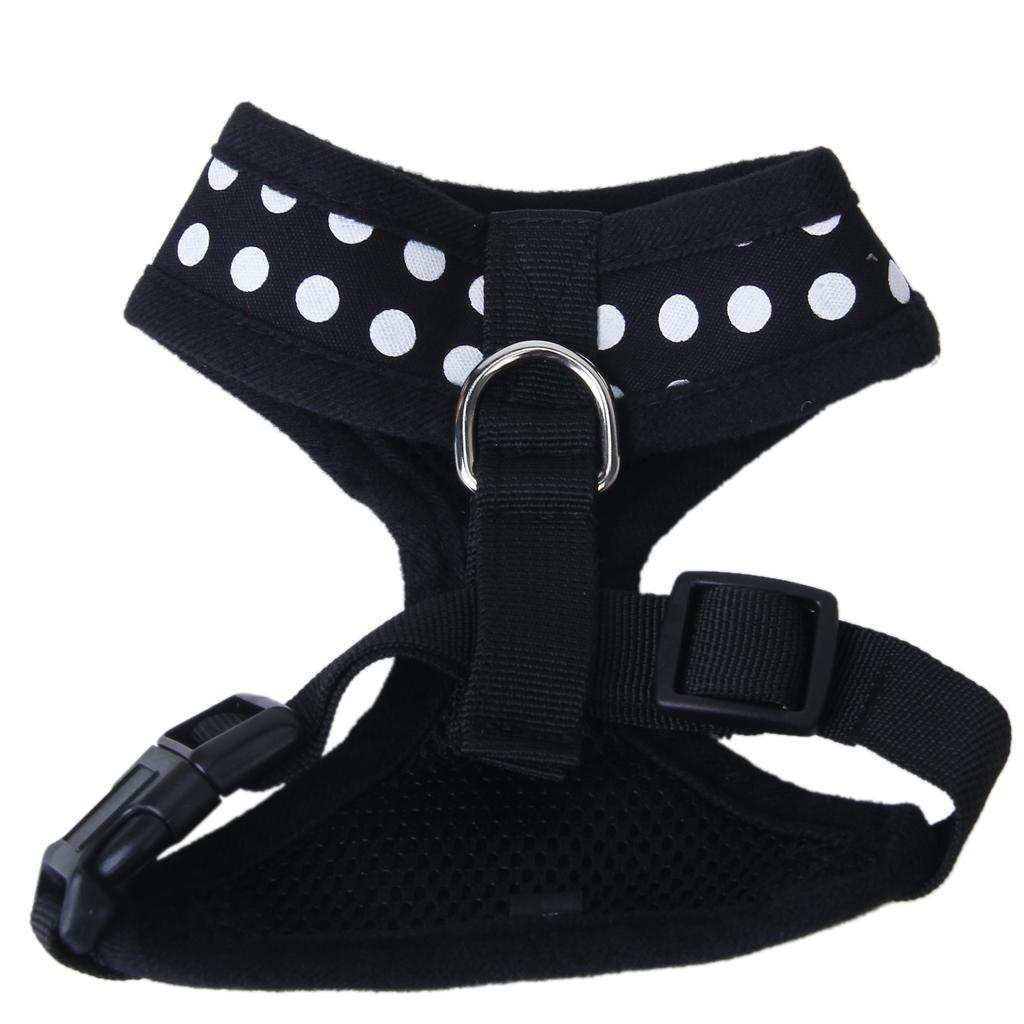 Pet Dog Soft Mesh Harness Clothes L - Black with White Dots