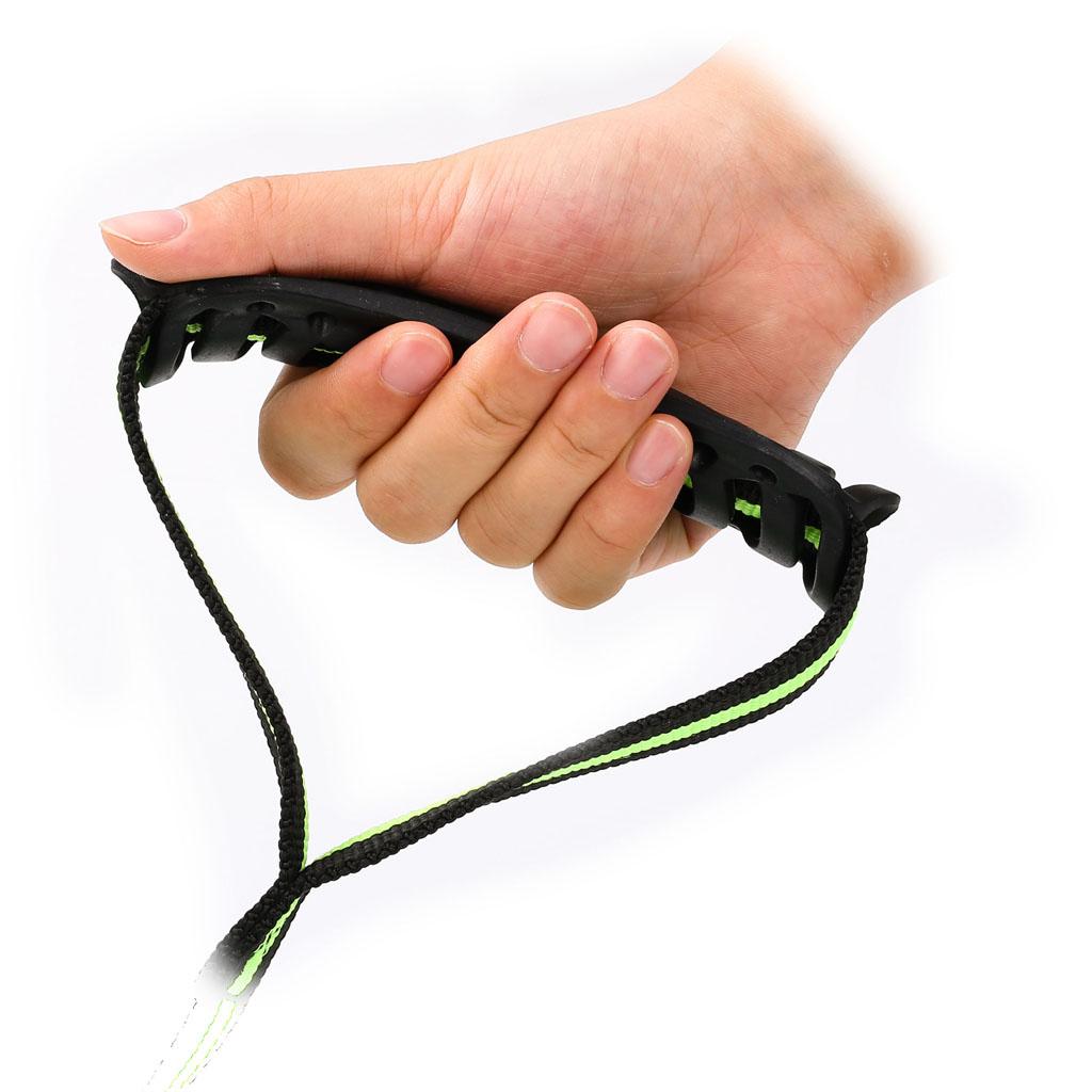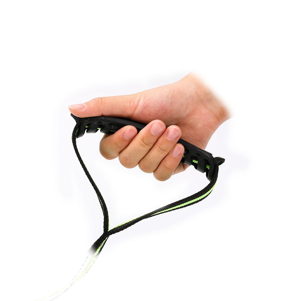 The plastic handle and high elastic nylon material,the grip is very comfortable.
