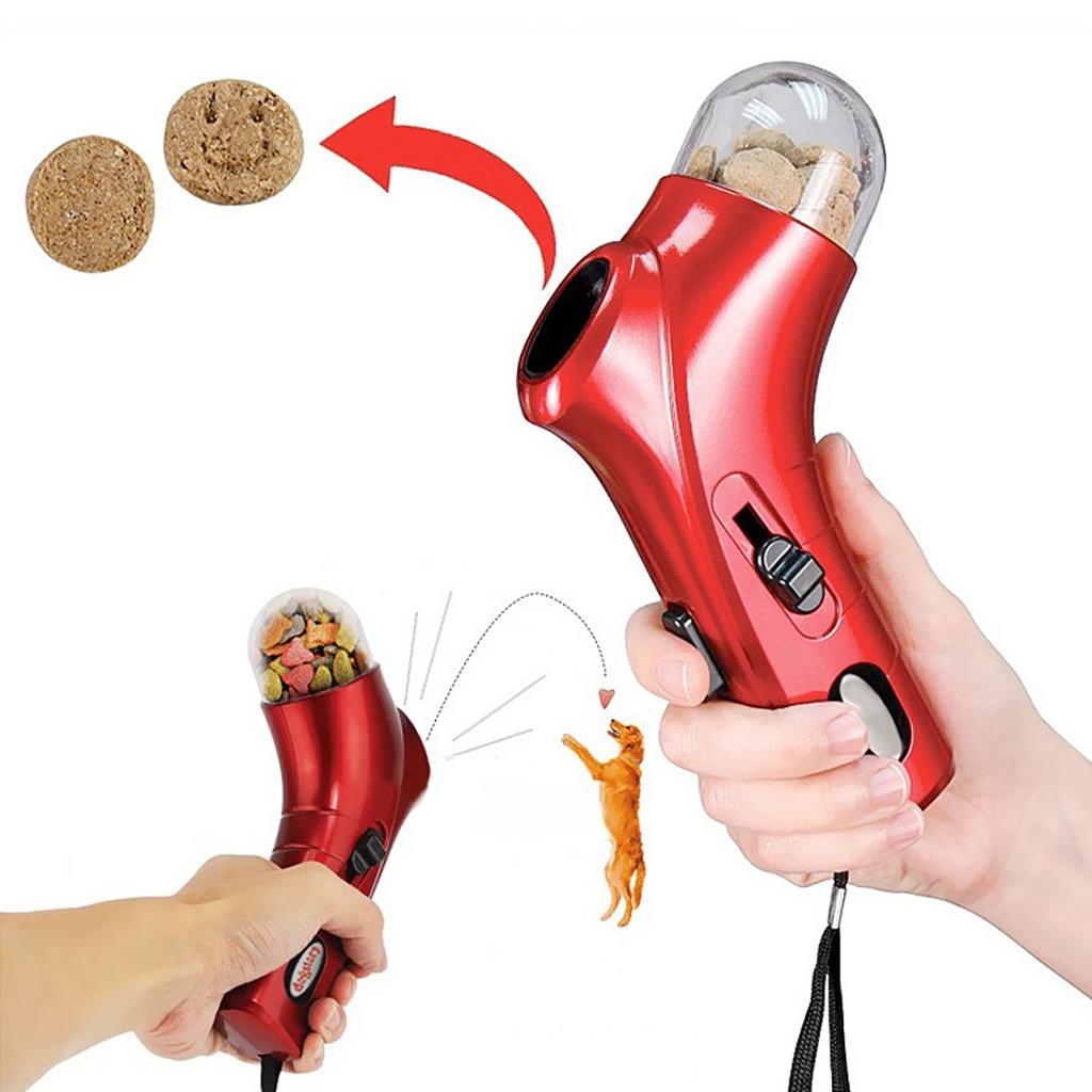 It is easy to load with your pets favorite treats and has a spring loaded trigger to launch treats. No need to hold those treats and worry about getting the crumbs off your hands