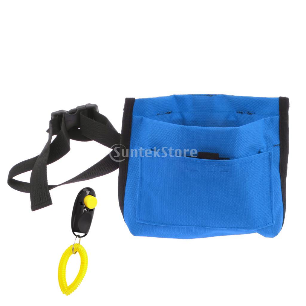 Pet Dog Treat Pouch Snack Bag Feed Bait Pouch with Training Clicker Blue