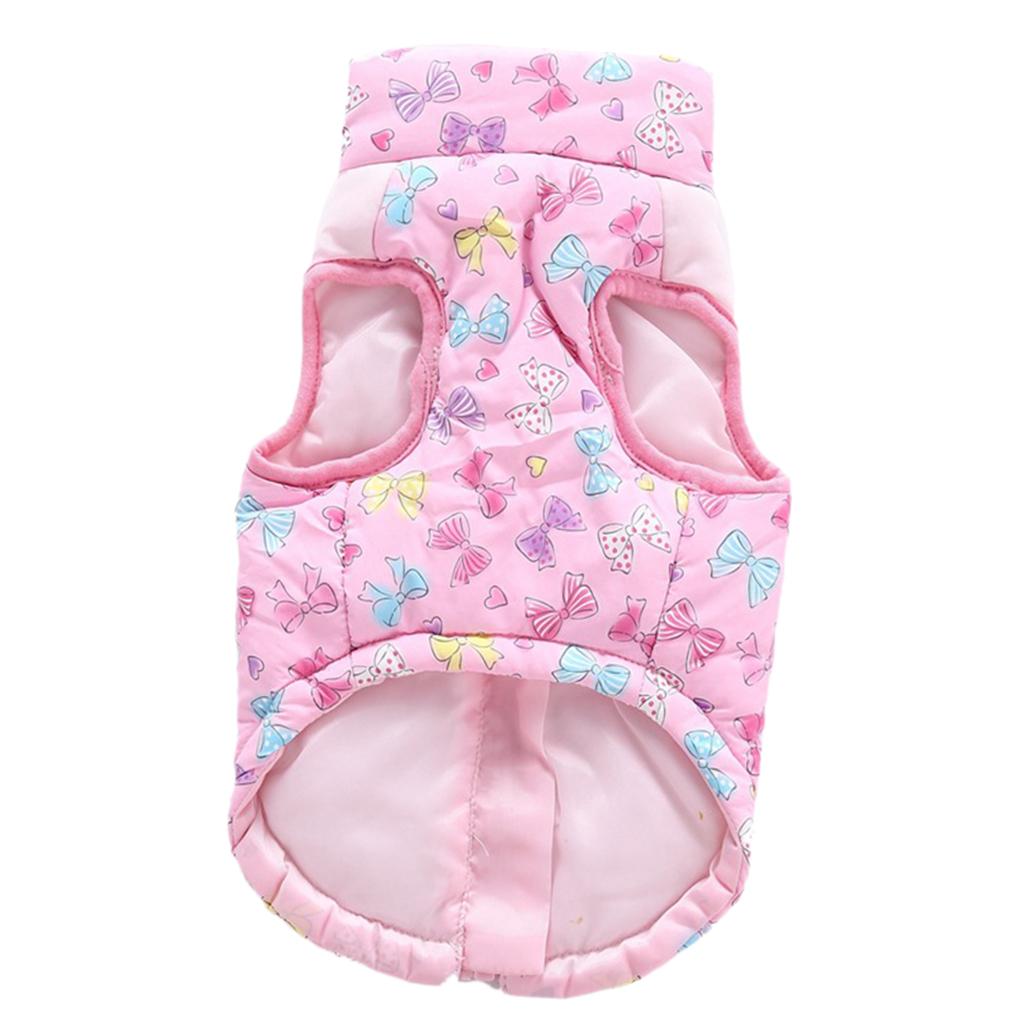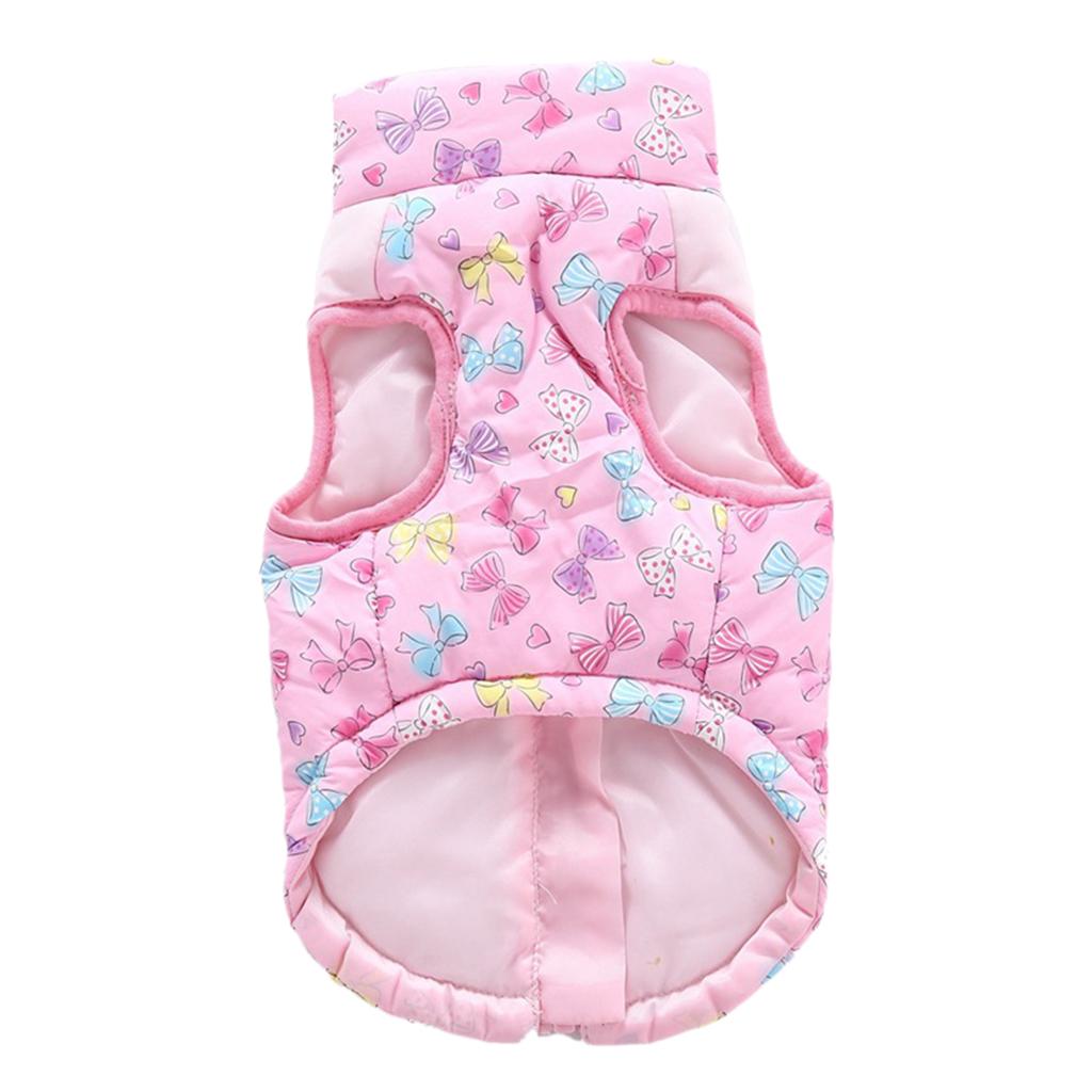 Pet Dog Warm Coat Down Jacket Winter Apperal Clothing L-Pink Bowknot