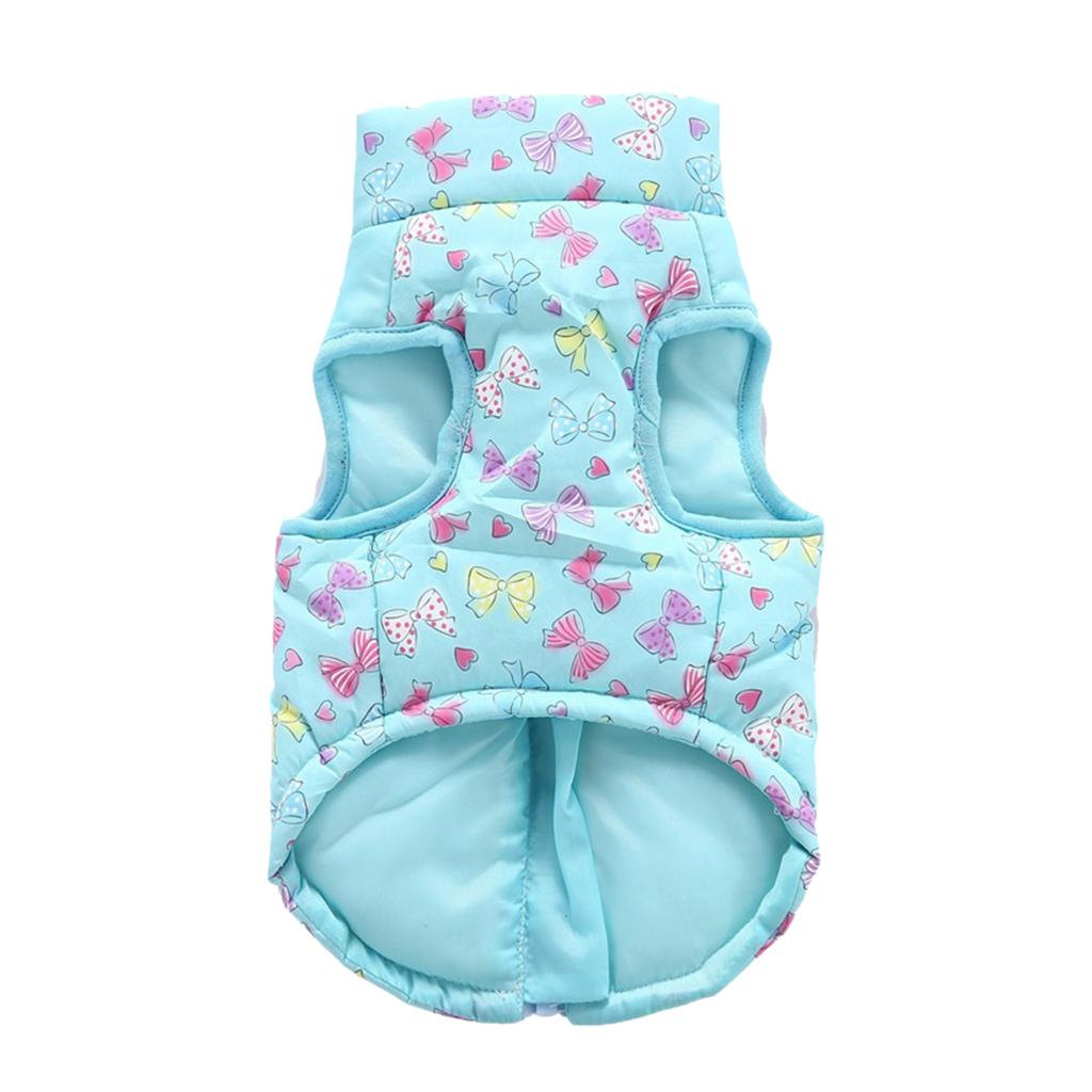 Pet Dog Warm Coat Down Jacket Winter Apperal Clothing XS-Blue Bowknot