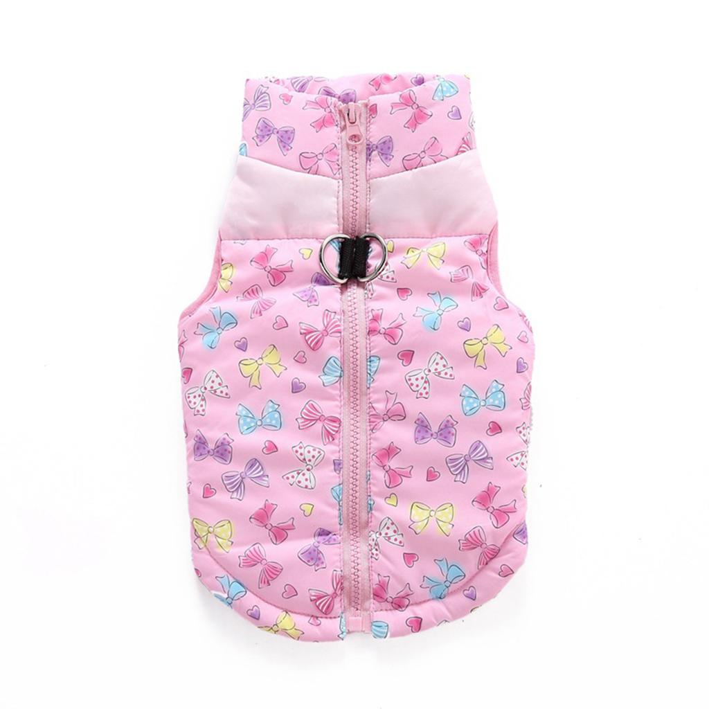 Pet Dog Warm Coat Down Jacket Winter Apperal Clothing XS-Pink Bowknot