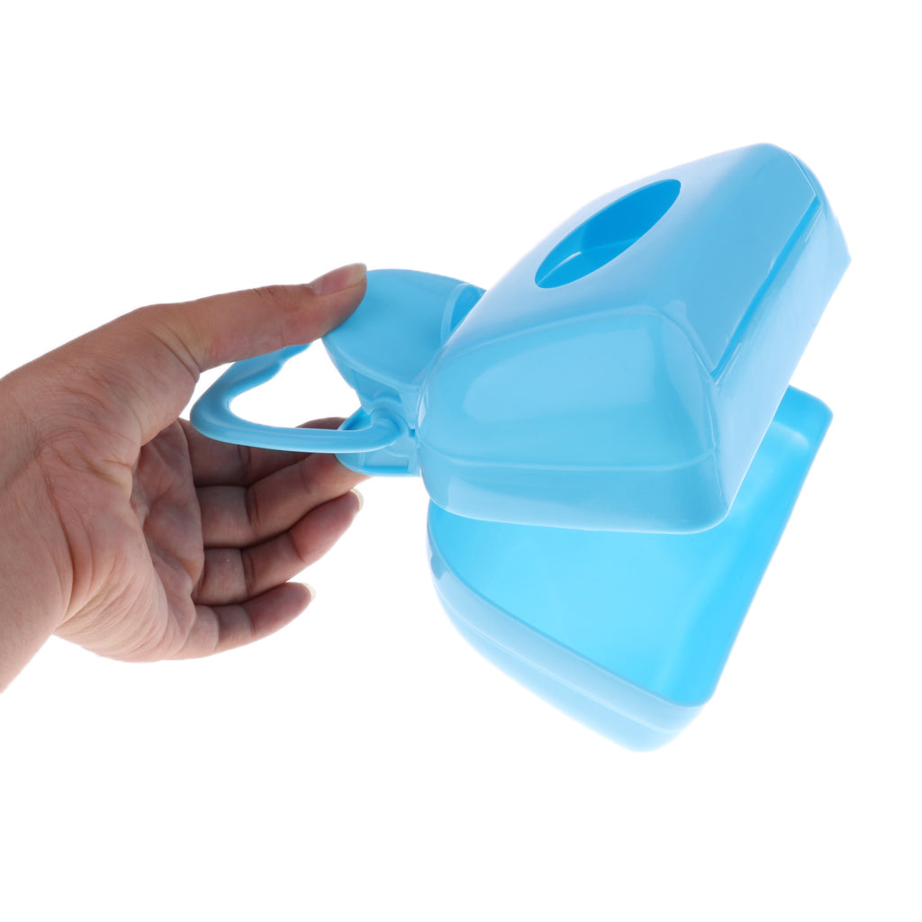 Made of plastic and comes with a ring hook for convenient to carry. Great for camping, travelling use