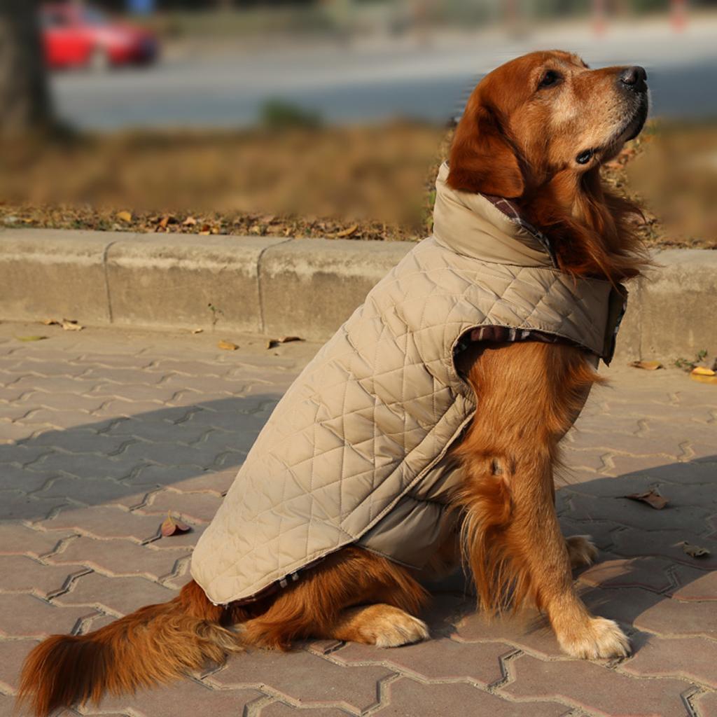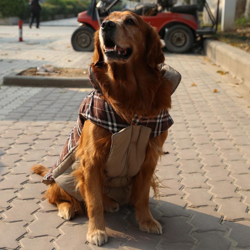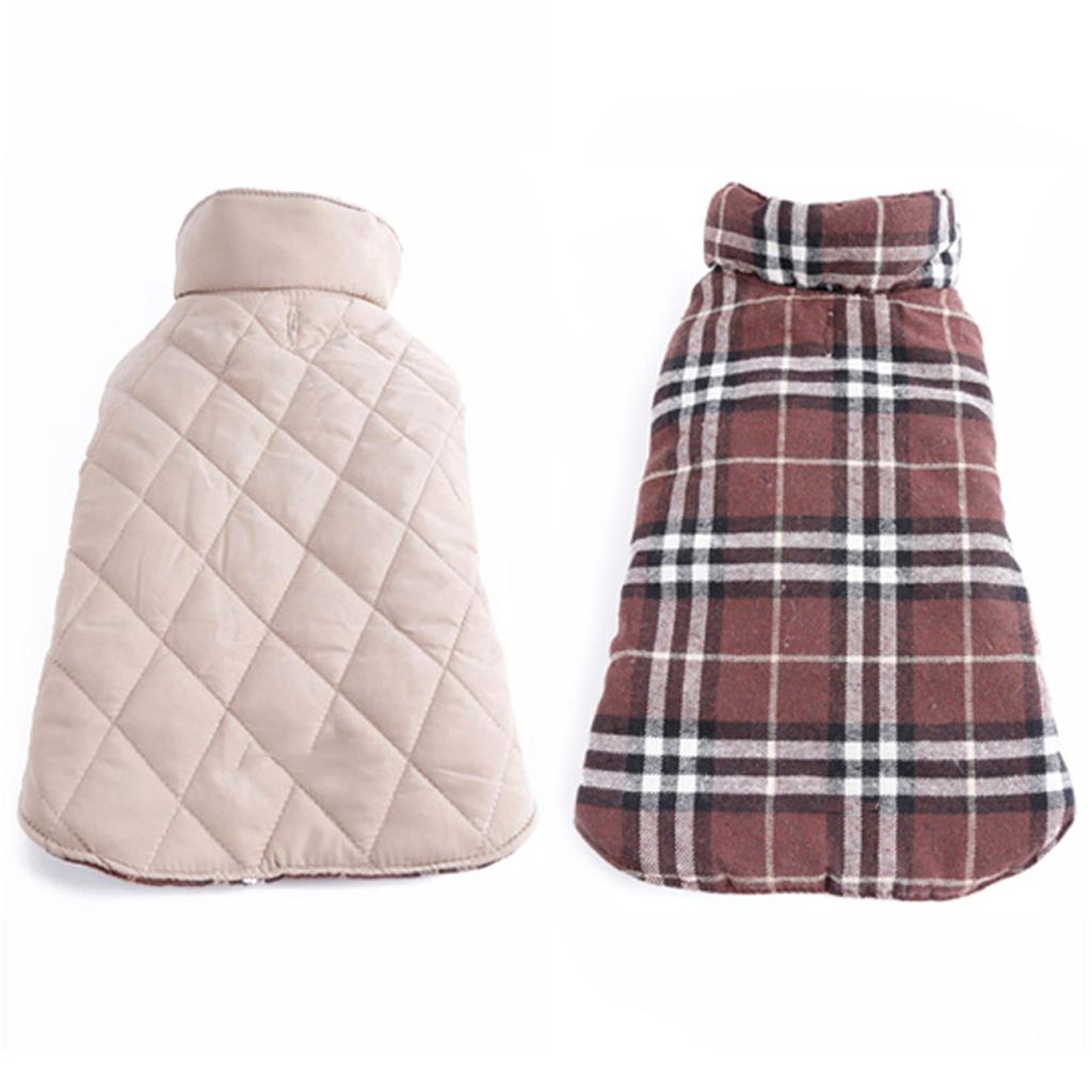 Pet Dog Waterproof Reversible Plaid Jacket Coat Winter Clothes Brown XL
