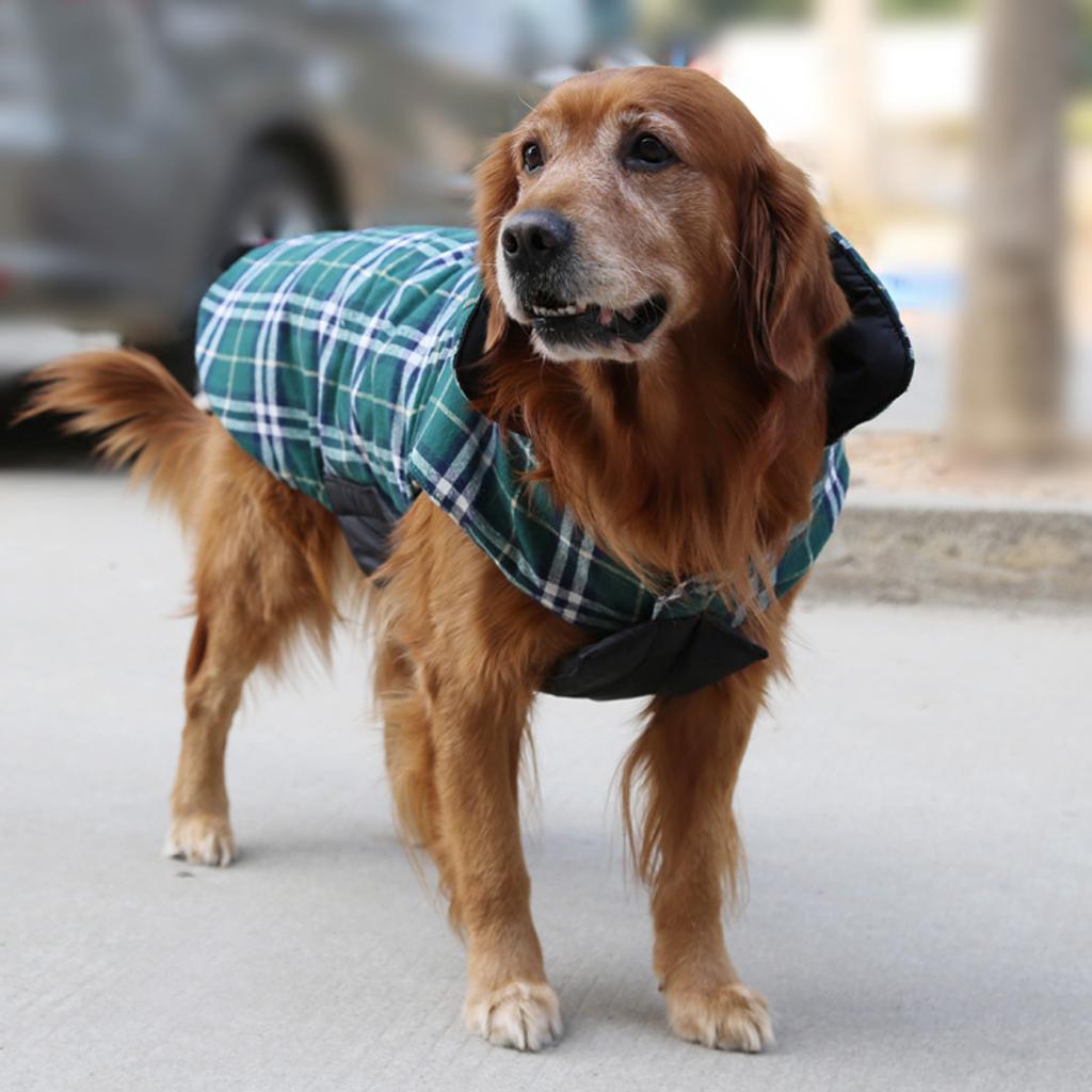 Pet Dog Waterproof Reversible Plaid Jacket Coat Winter Clothes Green XL