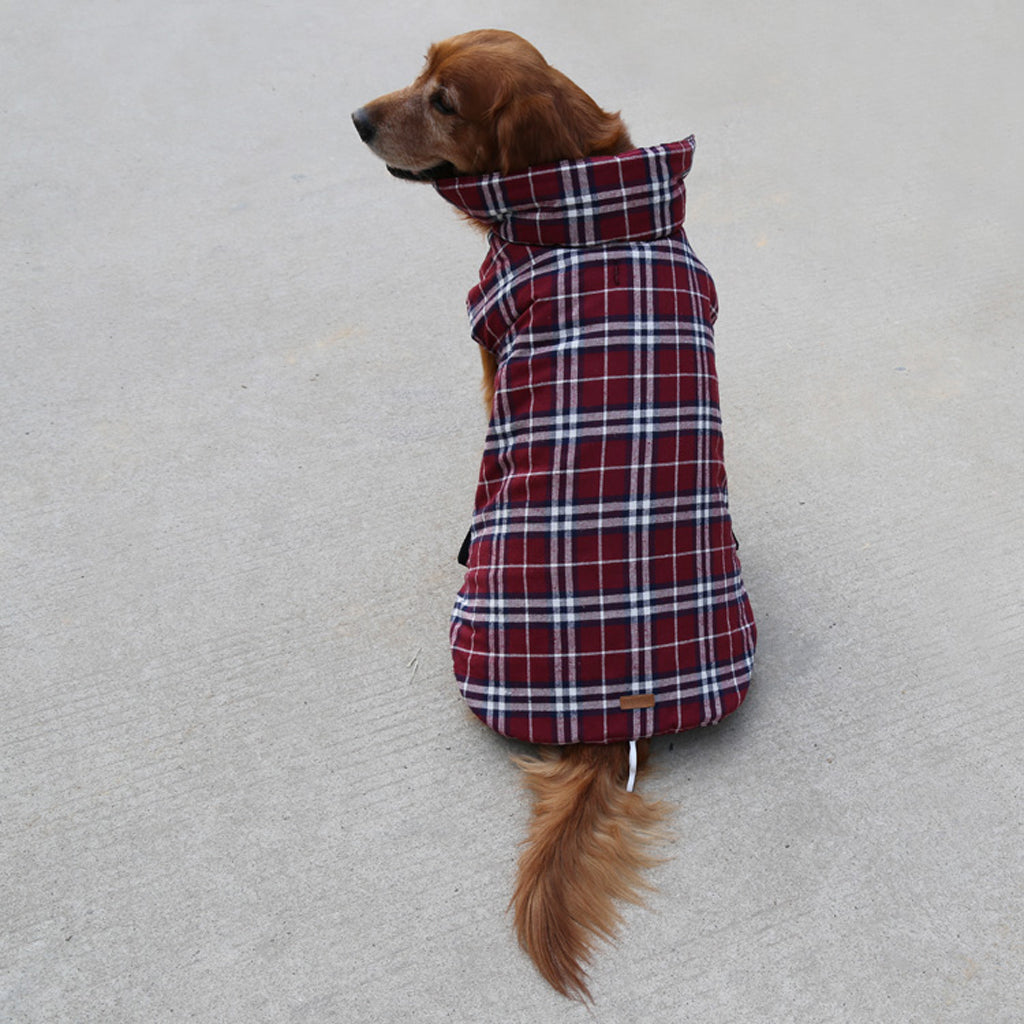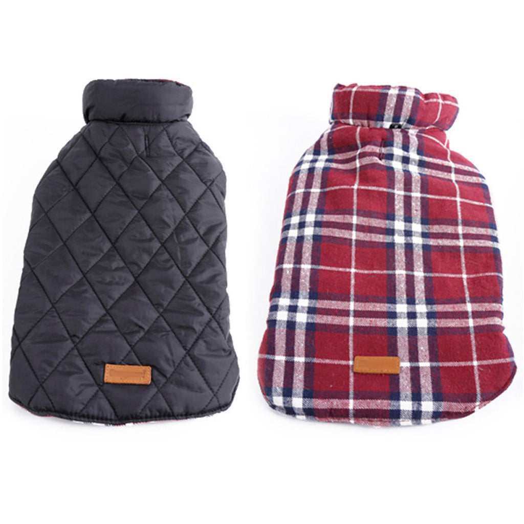 Pet Dog Waterproof Reversible Plaid Jacket Coat Winter Clothes Red L