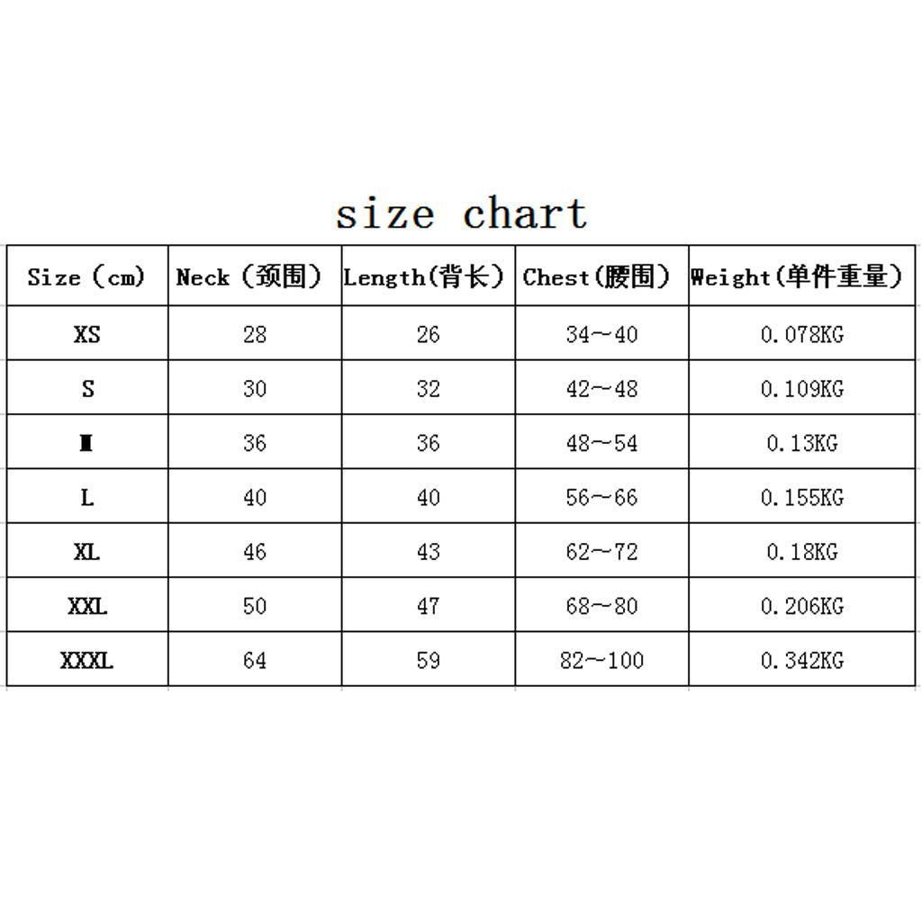 | Size | Neck | Back | Chest |