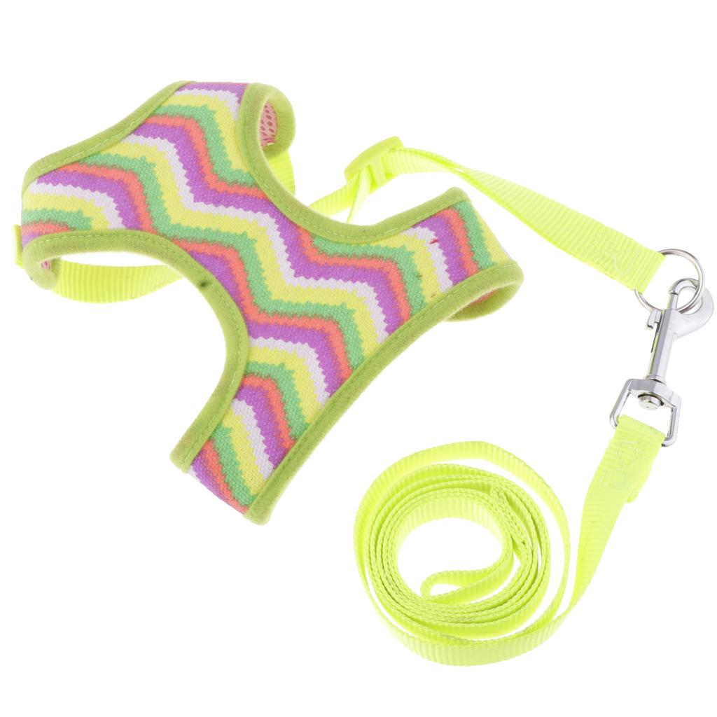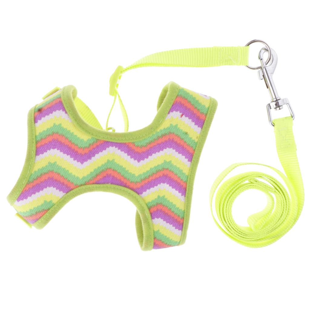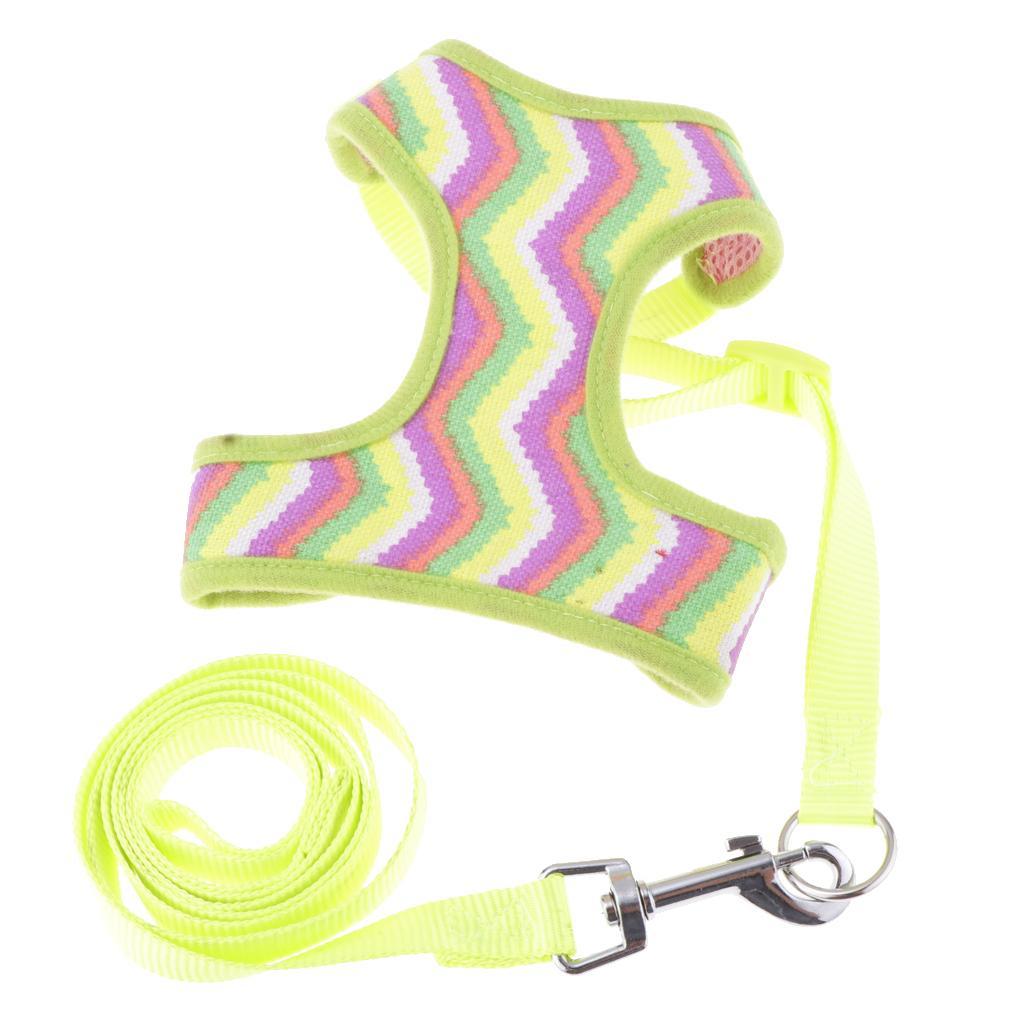 Pet Dog Wave Print Adjustable Harness Walking Lead Leash Chest Strap Green M