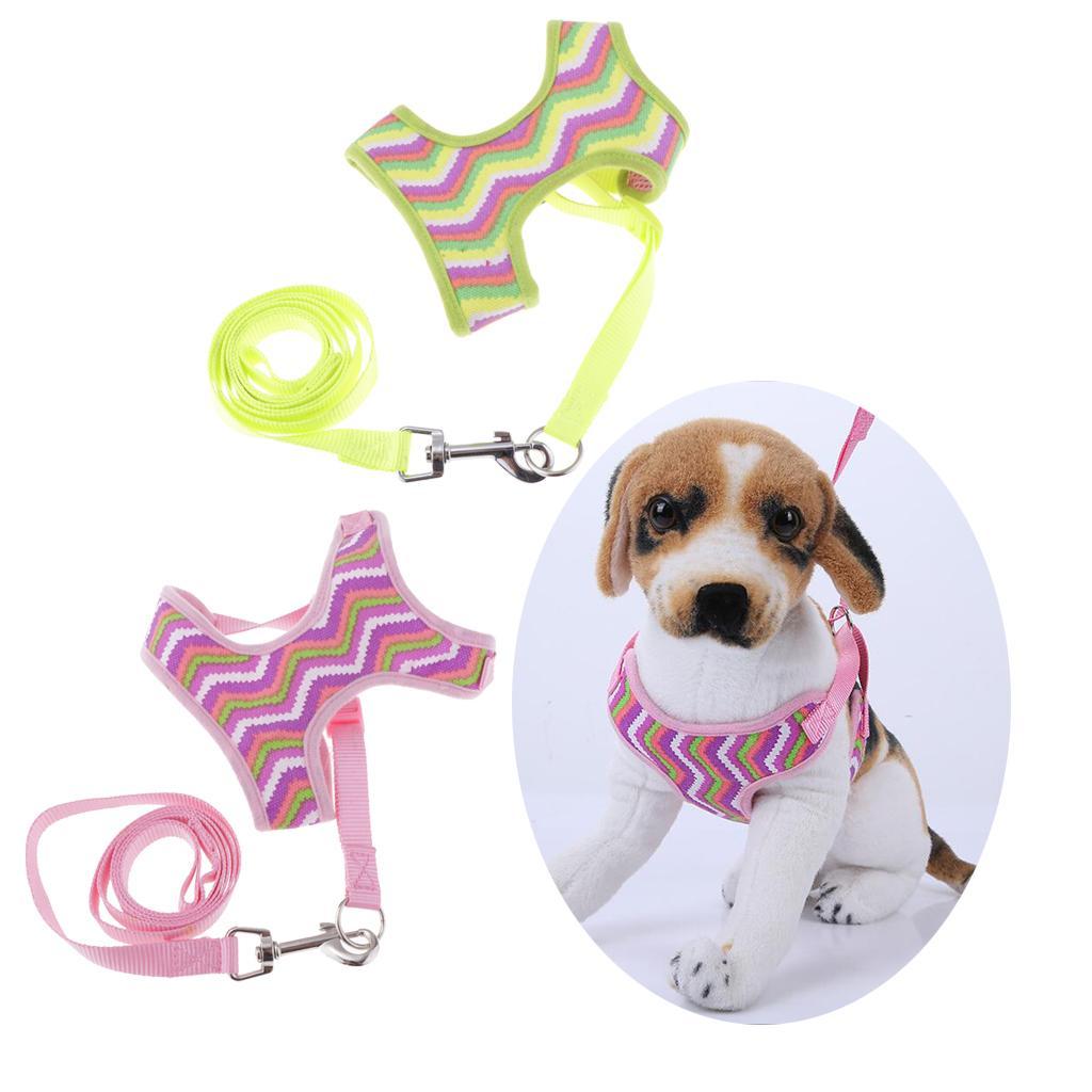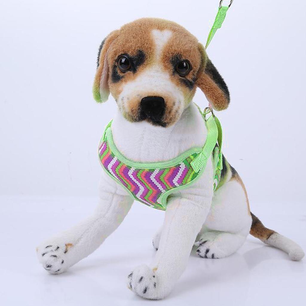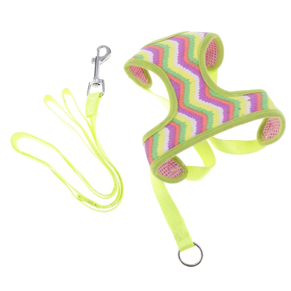Pet Dog Wave Print Adjustable Harness Walking Lead Leash Chest Strap Green M