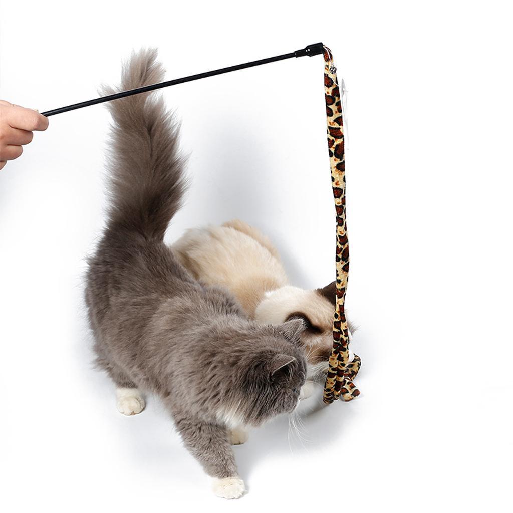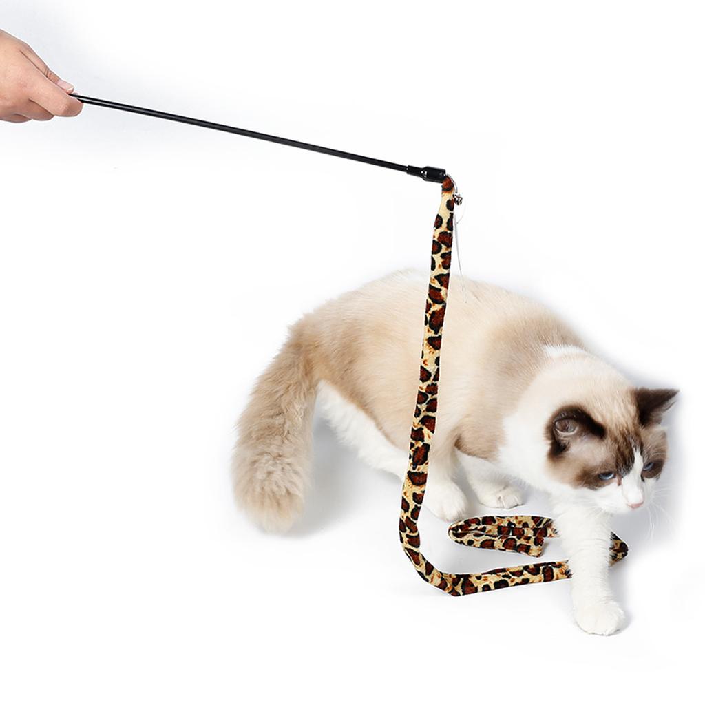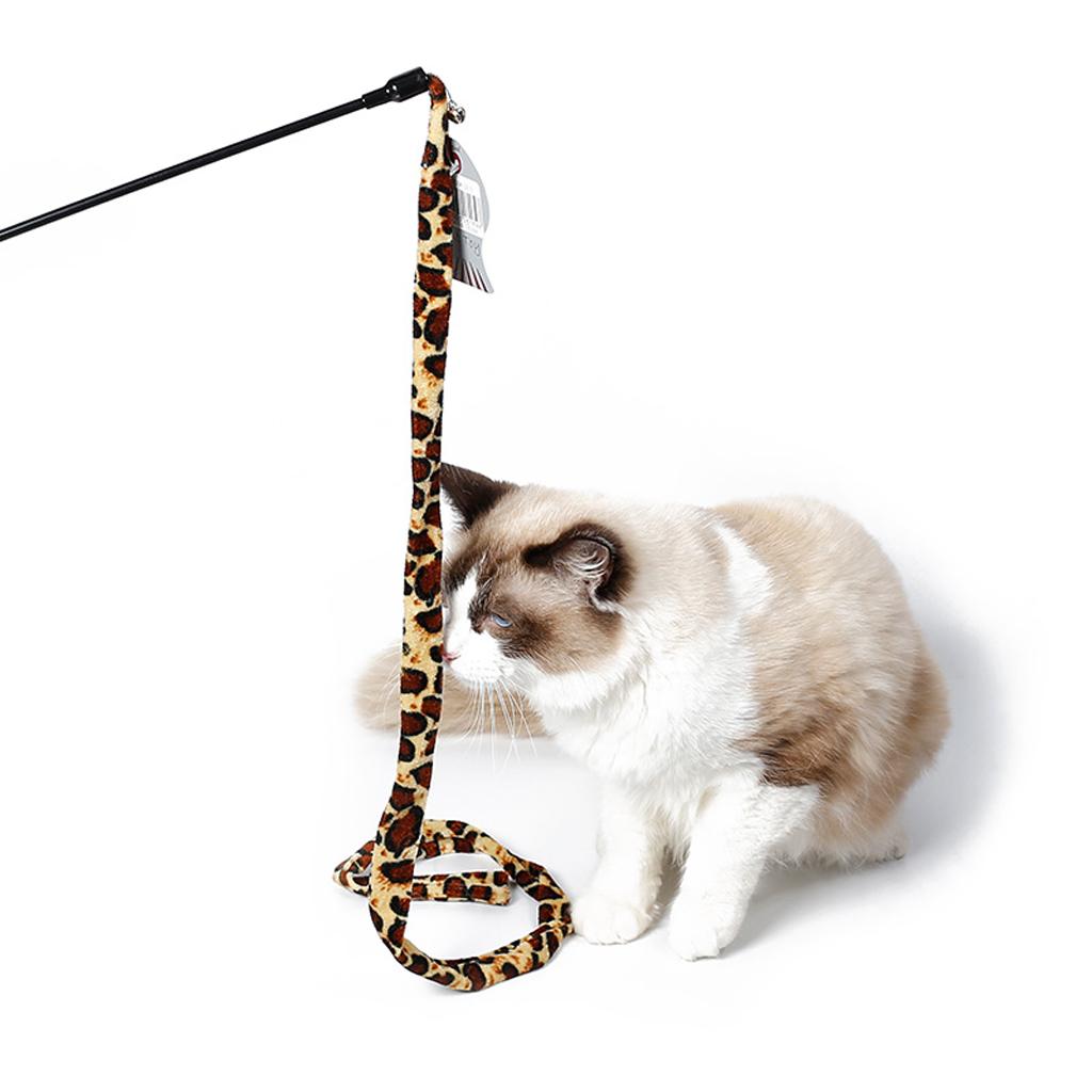 Pet Kitten Cat Teaser Wand Chaser Rod Interactive Play Toys w/ Bell-Leopard