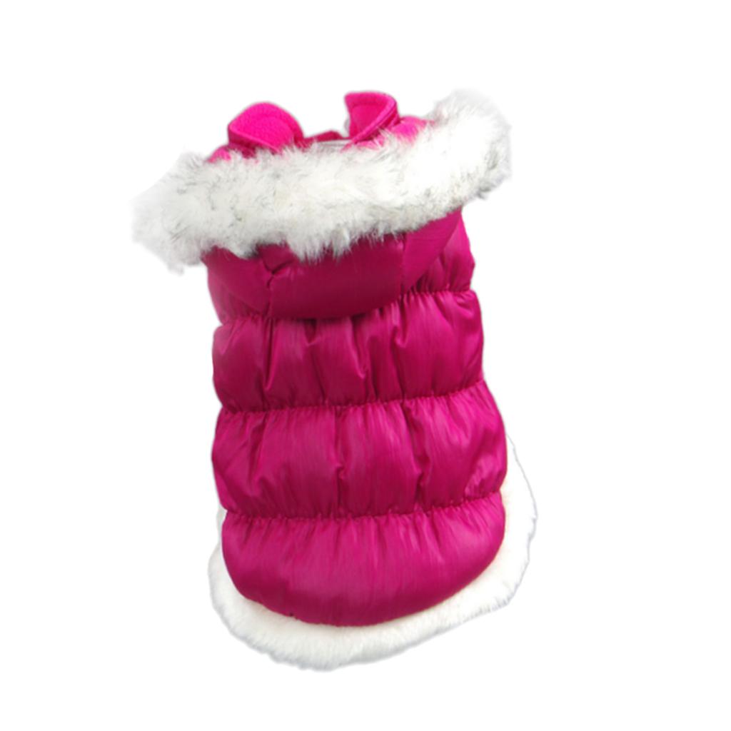 Pet Puppy Winter Hoodie Dog Cat Warm Coat Jacket Clothes Apparel Rose Red M