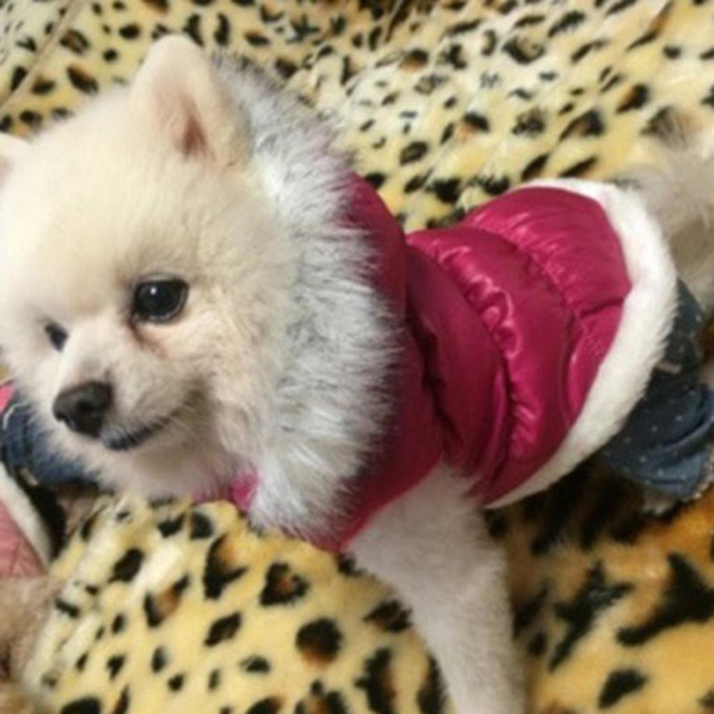 Pet Puppy Winter Hoodie Dog Cat Warm Coat Jacket Clothes Apparel Rose Red XL