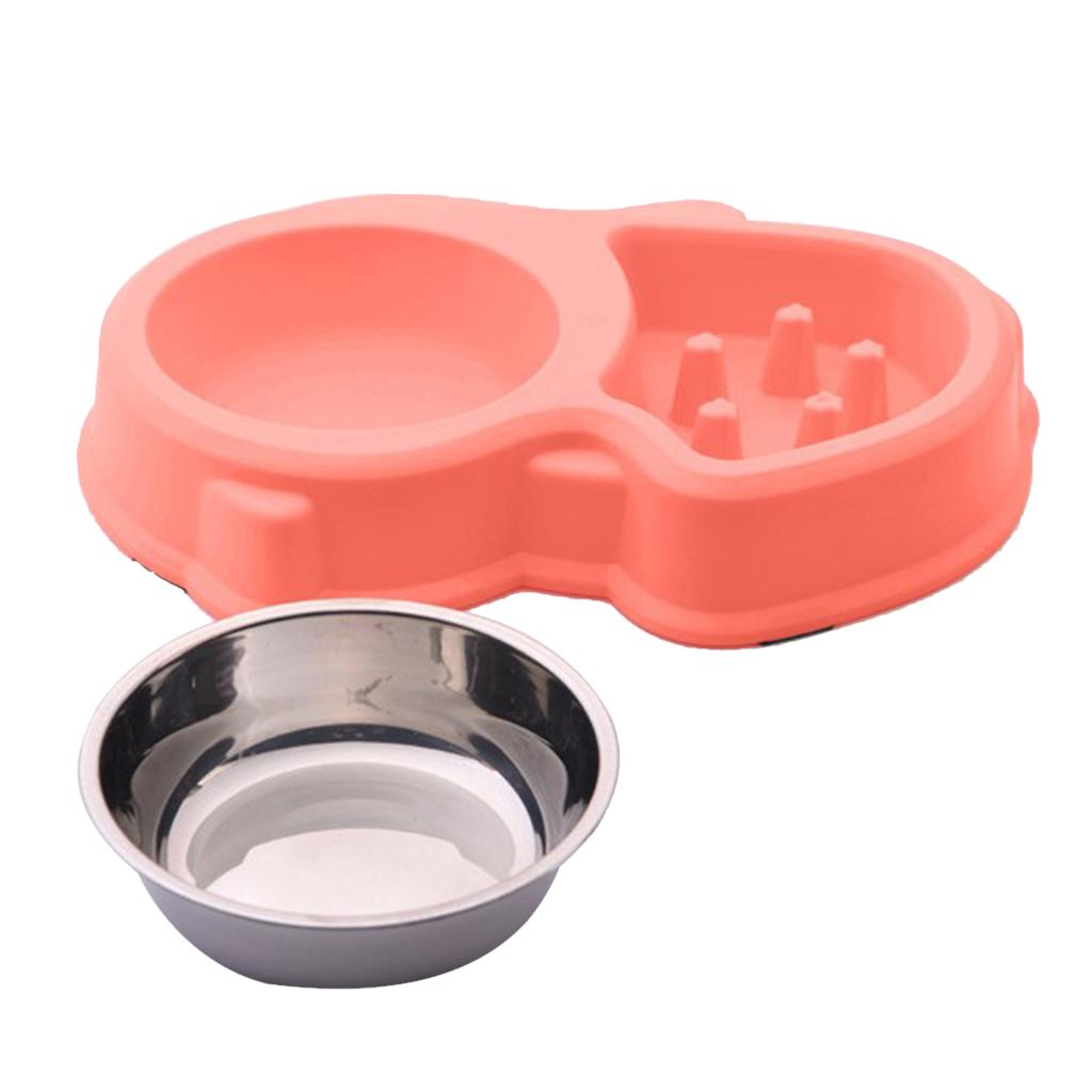 2 in 1 Pet slow feeder bowl set with a removable stainless steel bowl inside, can meet pet food and water need. Also can slow pet rapid eating, promote regular digestion and prevent bloating and discomfort.