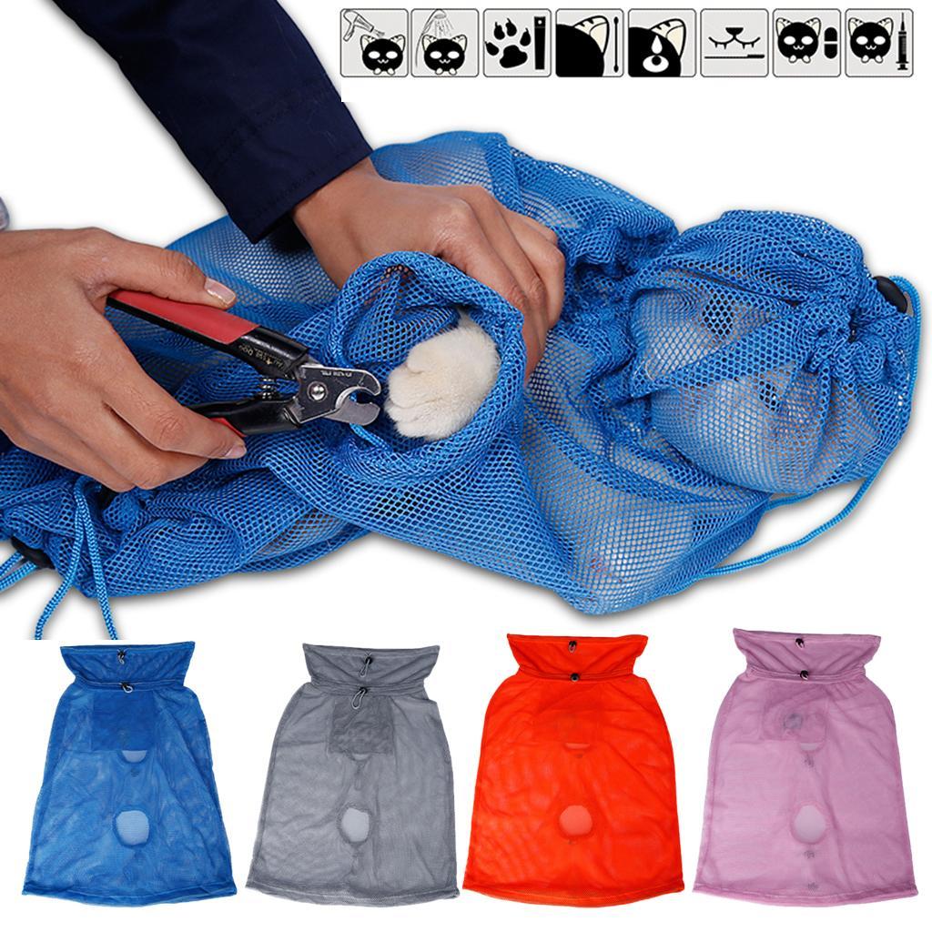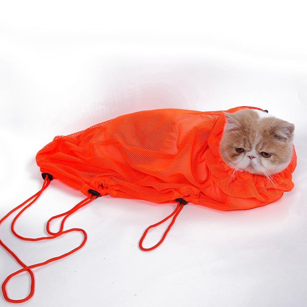 Pet Supplies Cat Grooming Bathing Shower Nails Clipping Feeding Restraint Mesh Design Multifunctional Bag Orange L