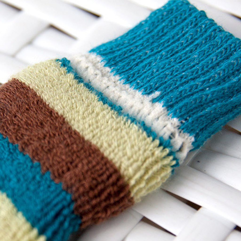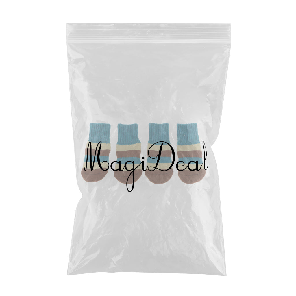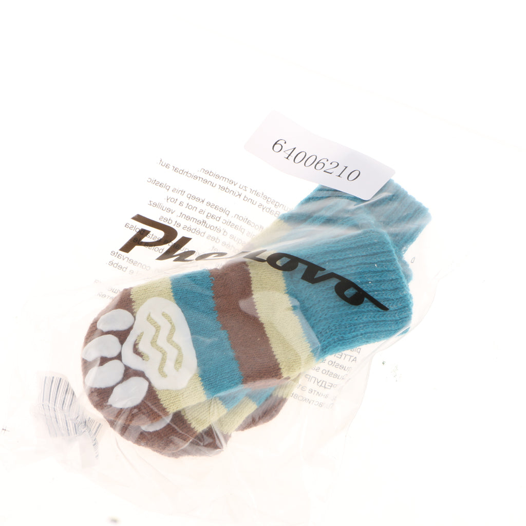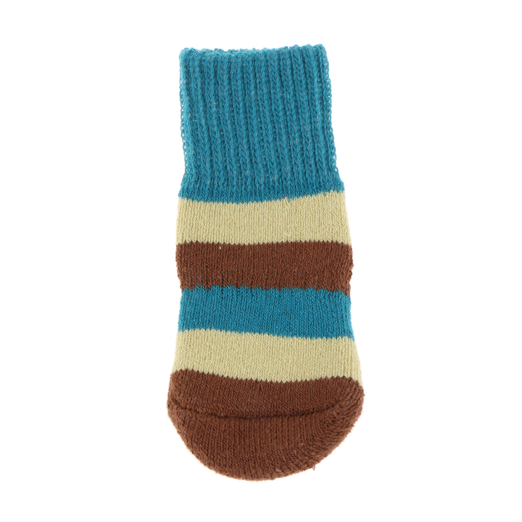 Pet dog winter socks with cute paw prints, colorful stripe pattern;