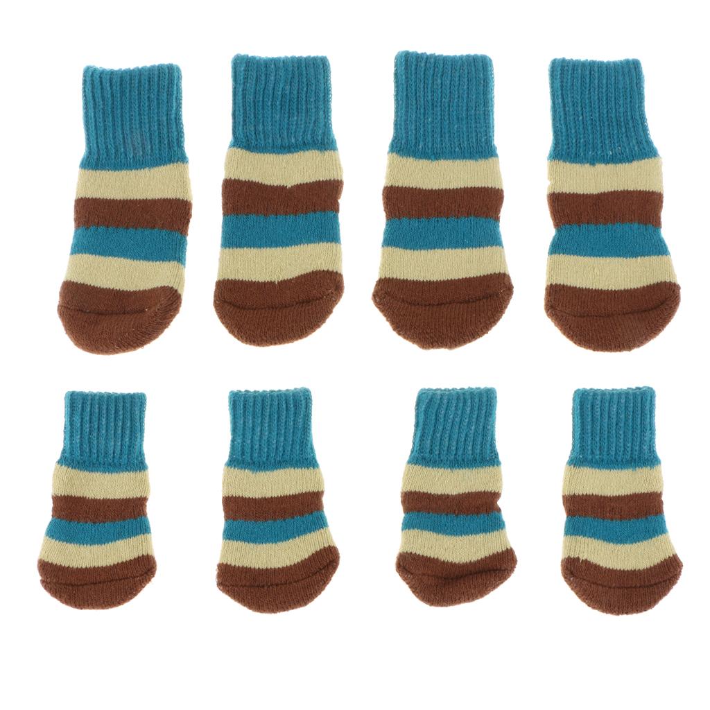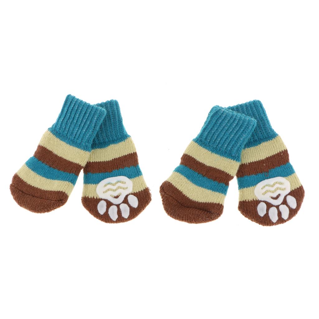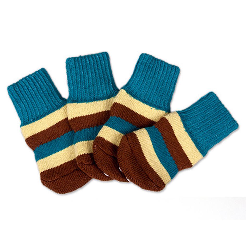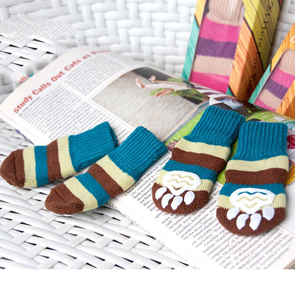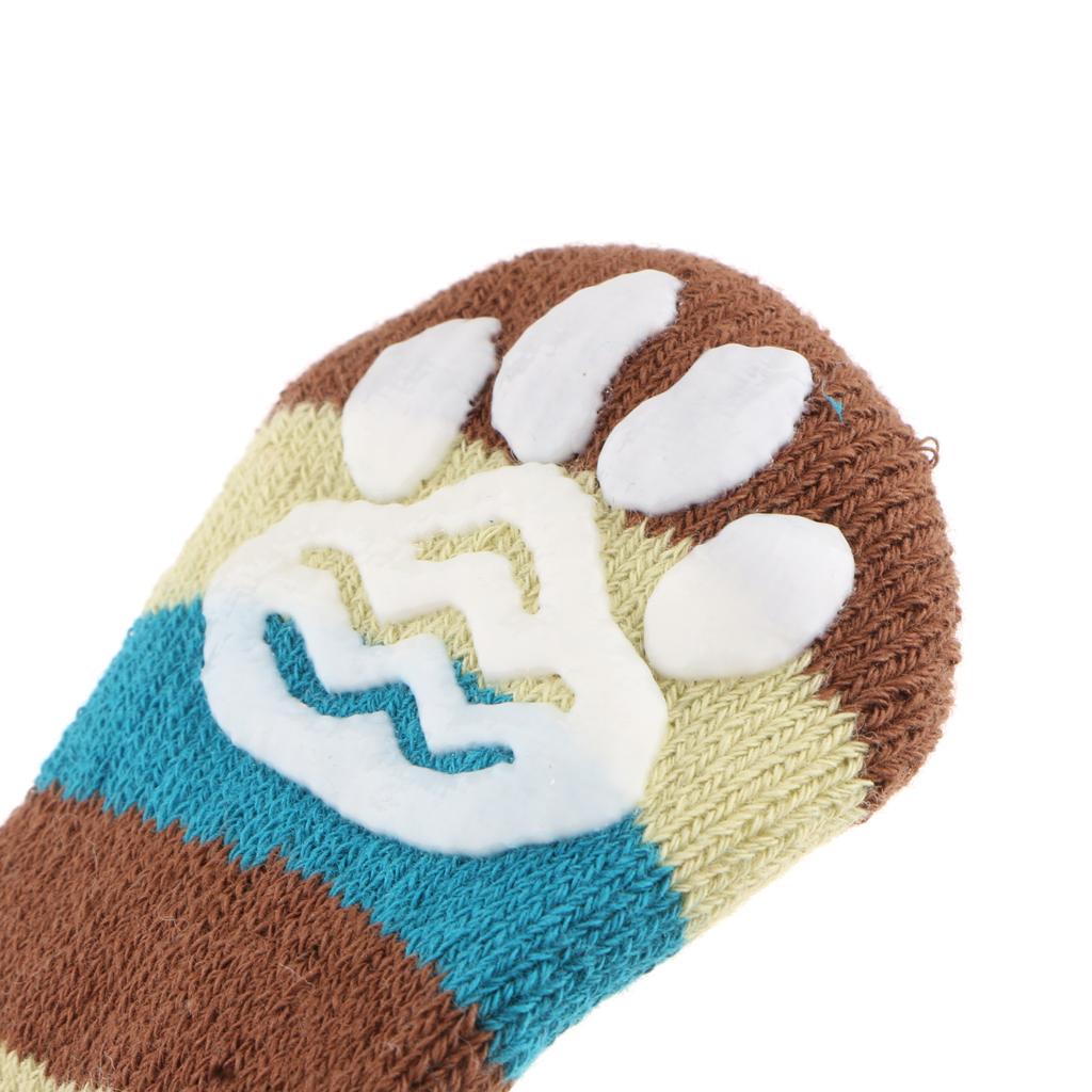 Pet dog winter socks with cute paw prints, colorful stripe pattern;