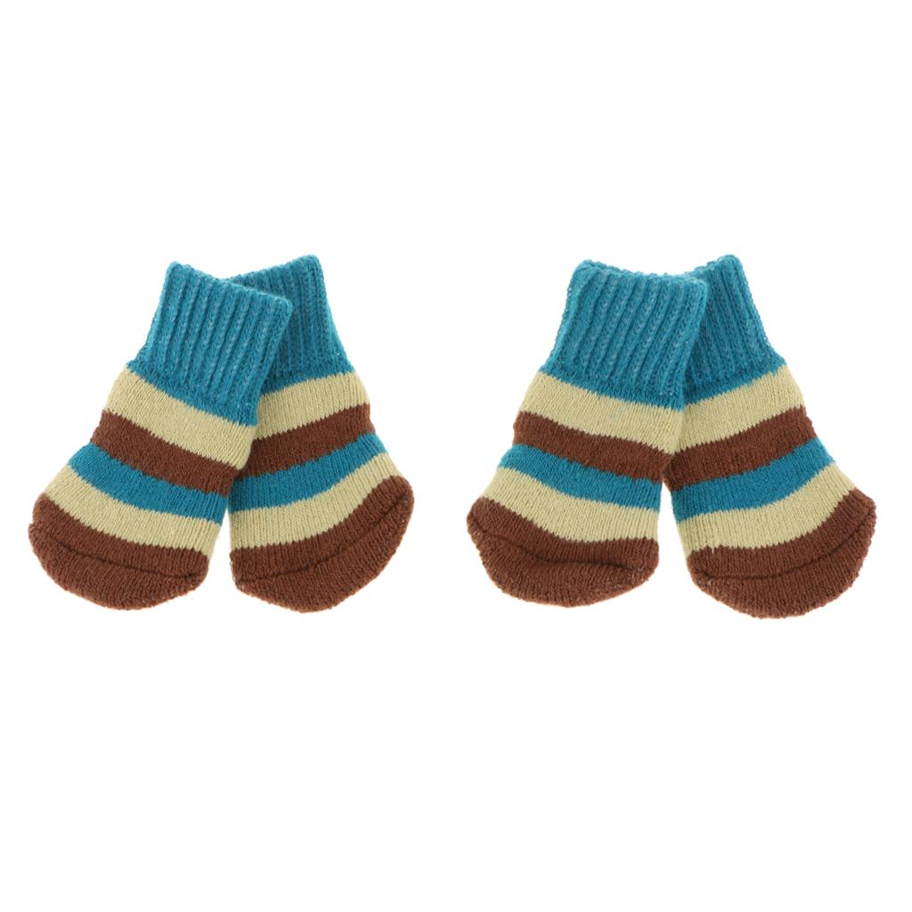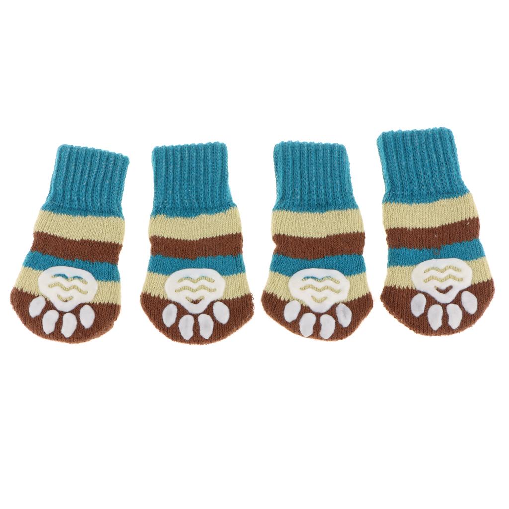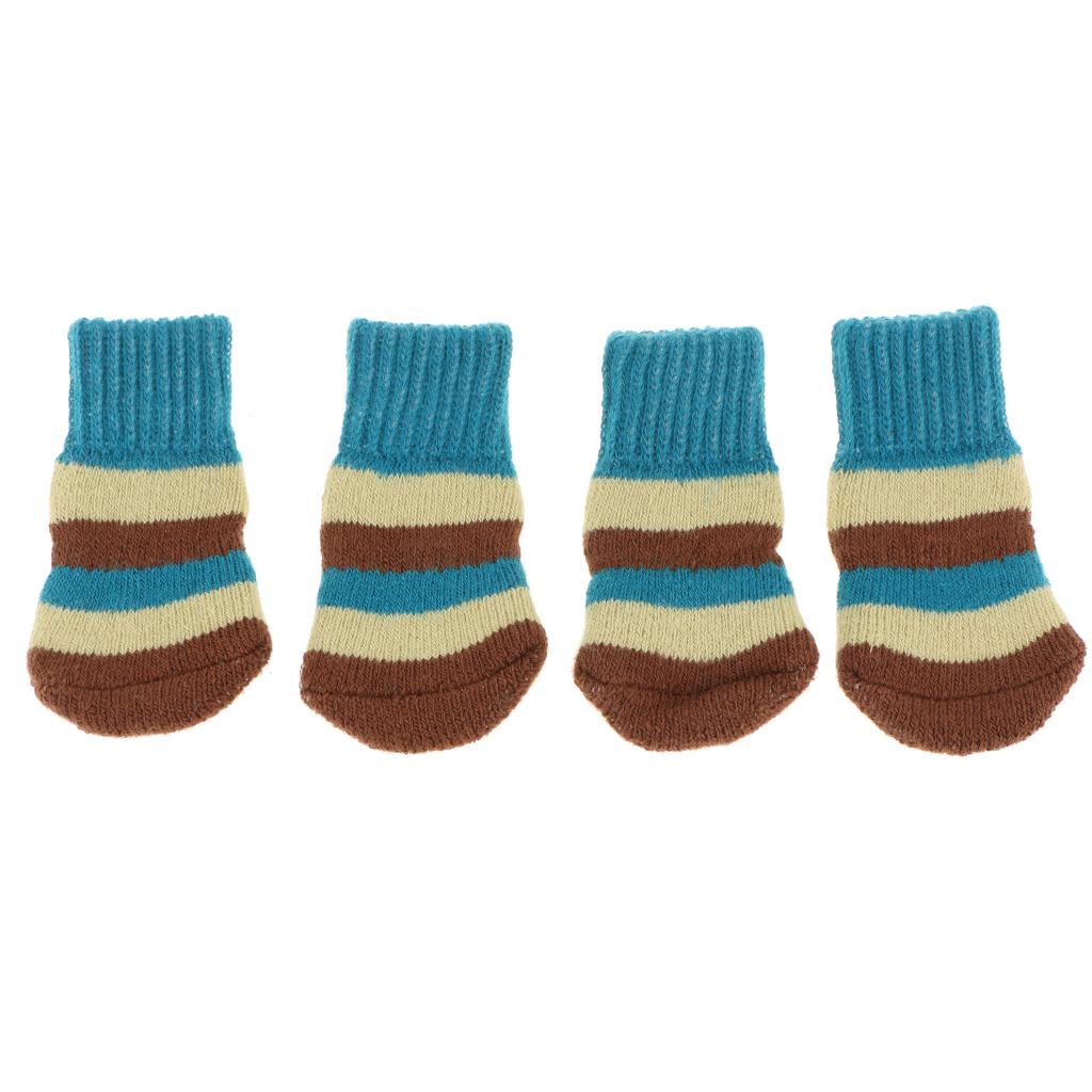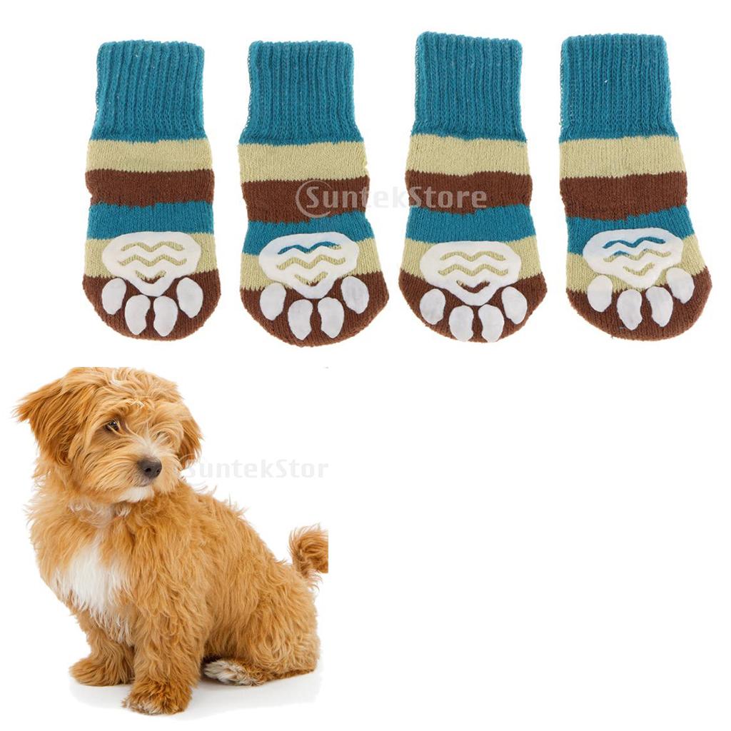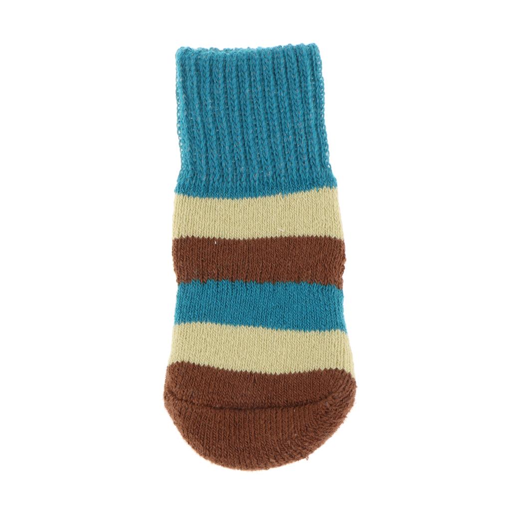 Pet dog winter socks with cute paw prints, colorful stripe pattern;