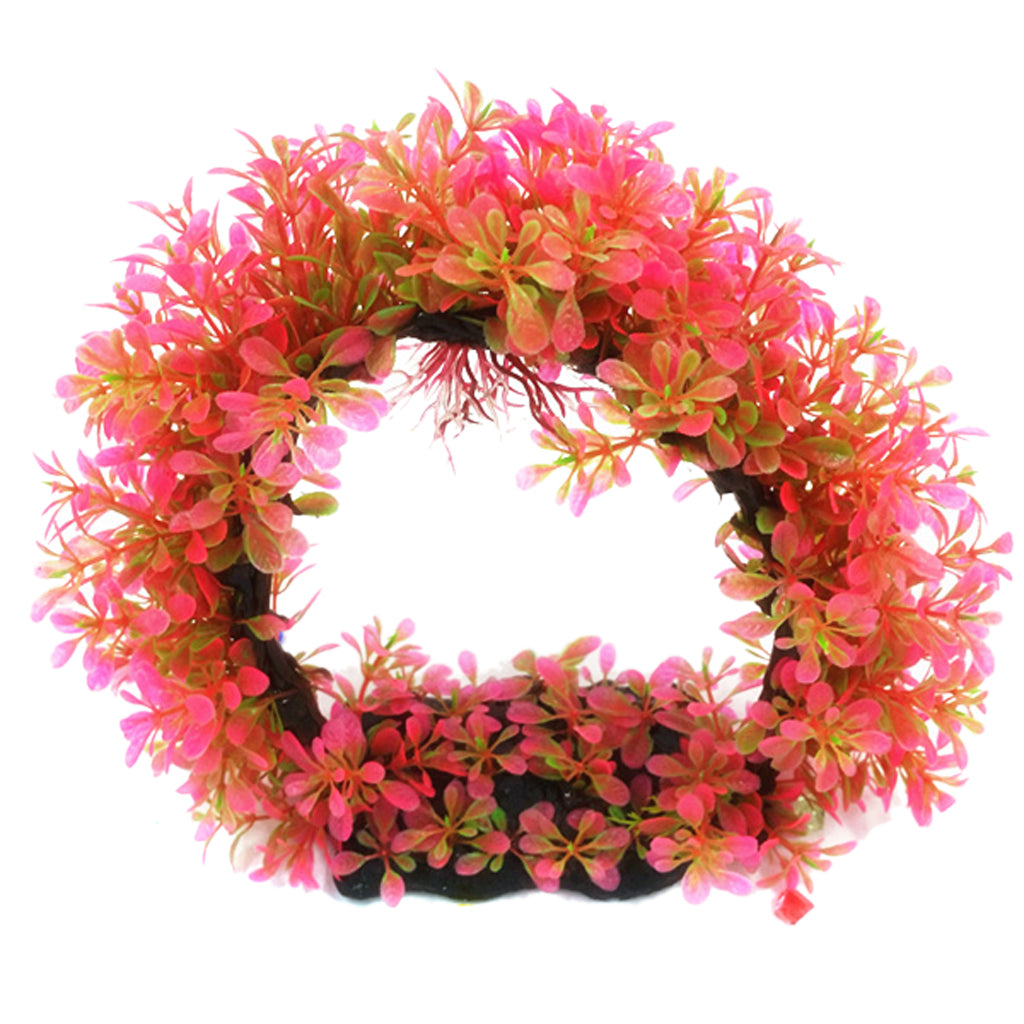 Plastic Archway Tree Artificial Plants Weeds Aquarium Fish Tank Decor Pink
