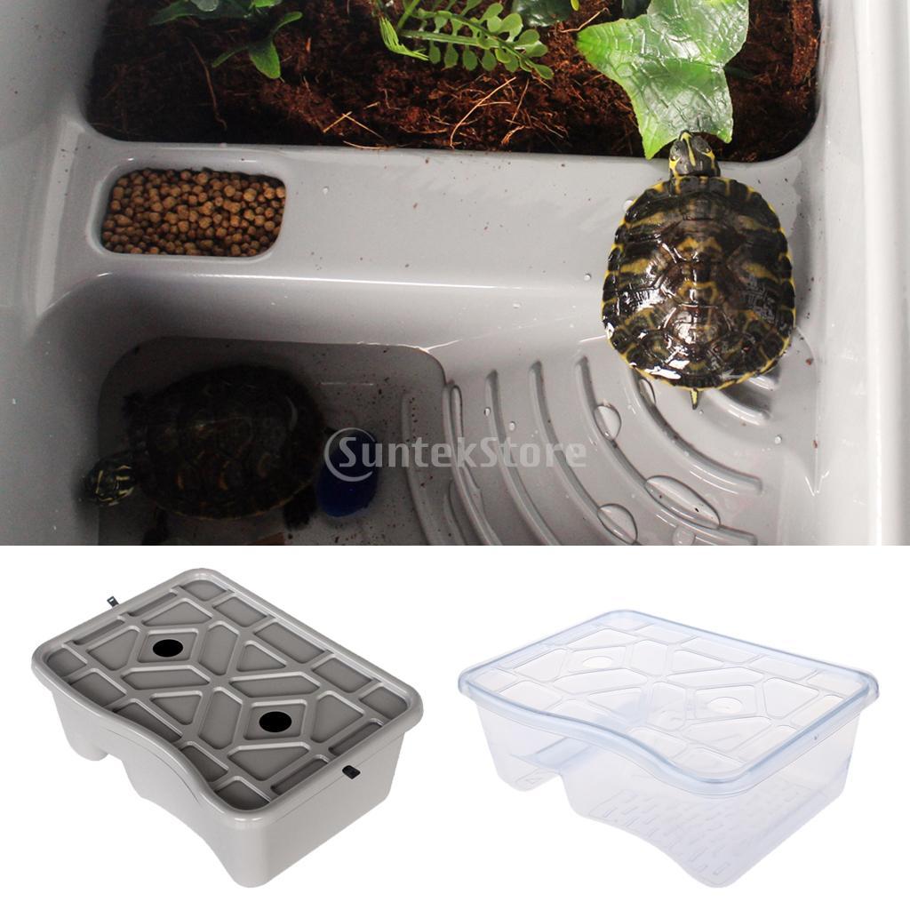 Design with 5 areas--docking ramp area, rest basking platform, feeding trough, breeding area, swimming area.