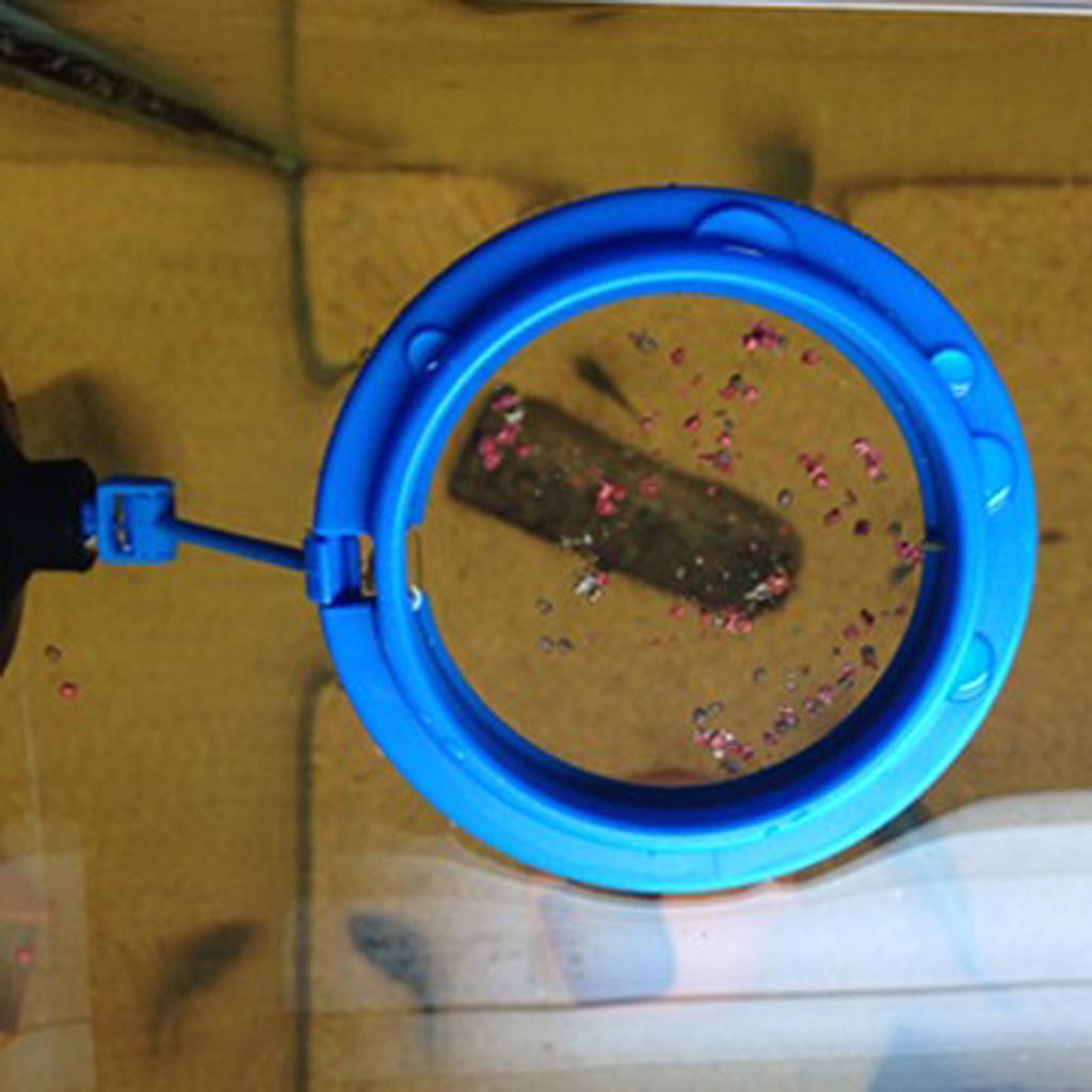 The fish feeder is a unique tool for making the feeding of flake foods and other floating foods. The fish feeder floats on the surface of the aquarium water and the other ends adhered to the inside surface of glass or acrylic aquariums.